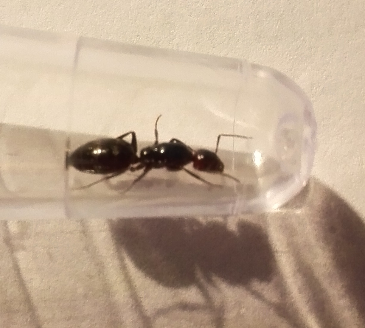 questa mattina mentre tagliavo le piante nella mia casa in collina a circa 600 m slm mi sono imbattuto in una neo colonia per cui chiedo il vostro aiuto nell'identificazione. La regina è lunga 0.9 cm e l'ho trovata sotto la corteccia in un albero secco, le operaie hanno la testa rossa e il corpo nero e quando sono disturbate alzano l'addome verso l'alto. Spesso questo tipo le vedo in processione sulle case o comunque in montagna sempre sul legno.