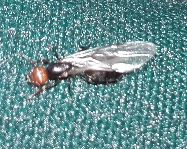 Purtroppo la macchinetta digitale mi è defunta e devo ricorrere al solo telefonino, che uso come posso; spero che lo schema di colore sia sufficiente ad identificarla, a me, dal vivo, faceva venire in mente Crematogaster scutellaris, era bella grande, secondo me sui 7 mm.