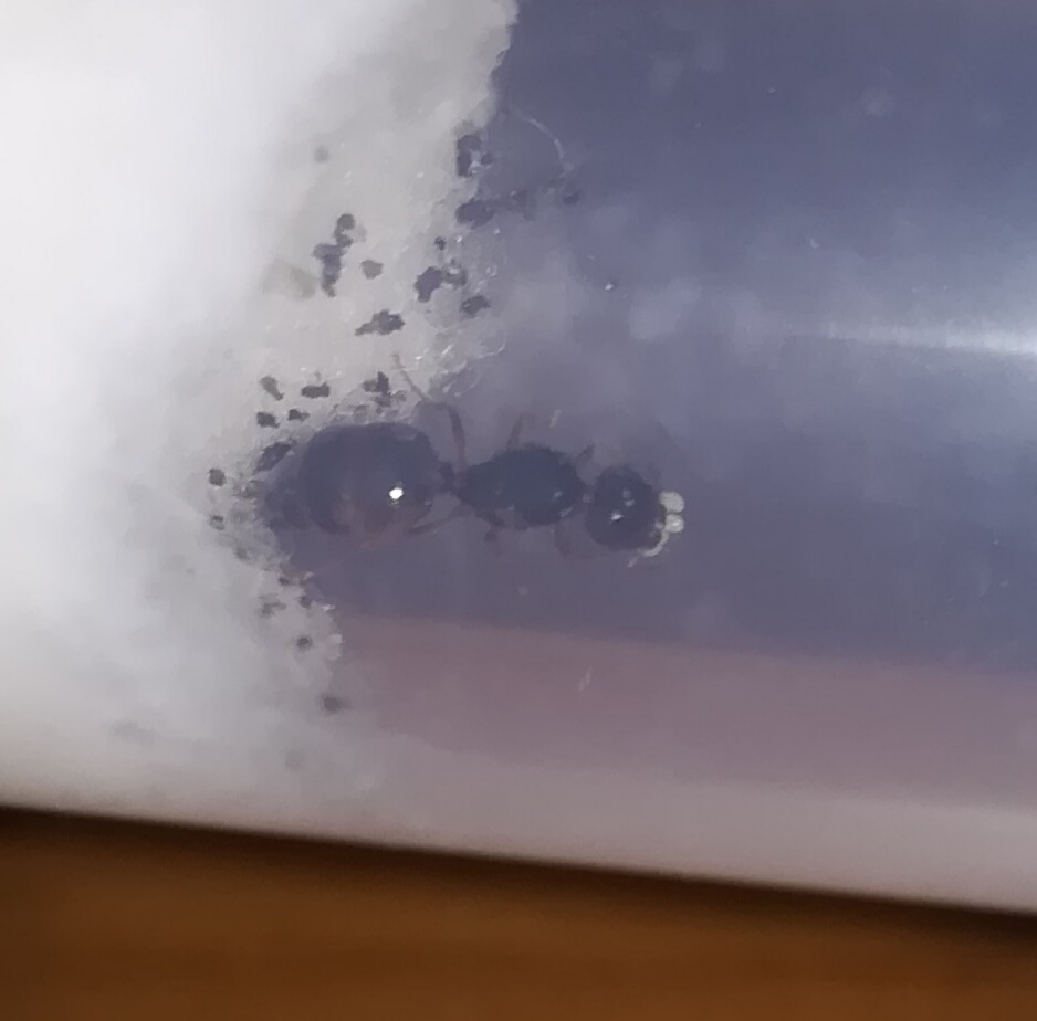 L'altro ieri ho trovato questa regina a Parma. Era circa mezzanotte e mezza. È lunga 6,5 mm e ha deposto la notte stessa in cui l'ho messa in provetta.