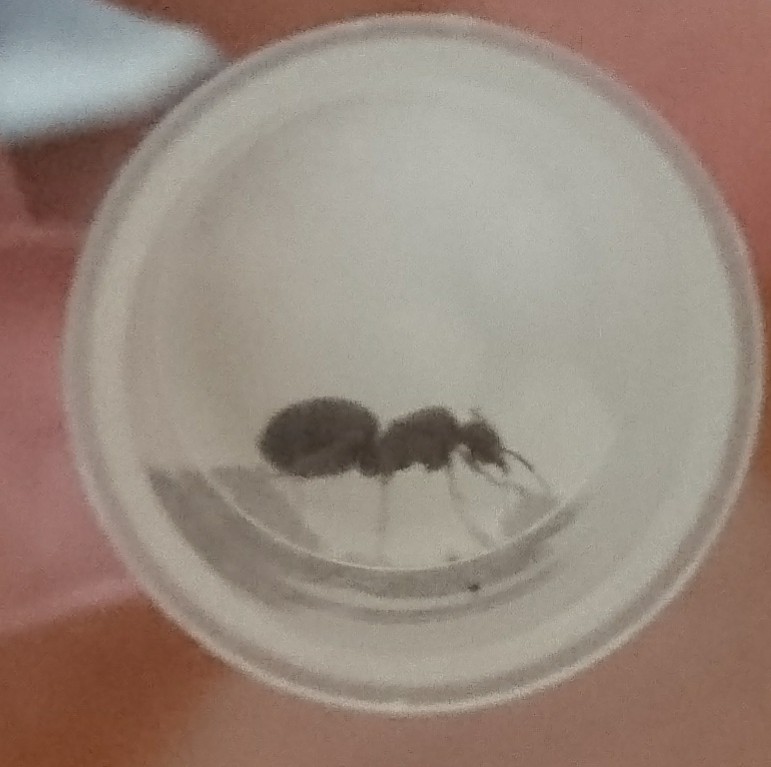 Al momenti del ritrovamento si muoveva lentamente tra le fughe delle mattonelle del marciapiede, messa nella provetta si toccava il gastro ma era altrimenti tranquilla e ora dopo una notte ferma al buio sta tranquillamemte nella provetta dal lato dell'acqua.