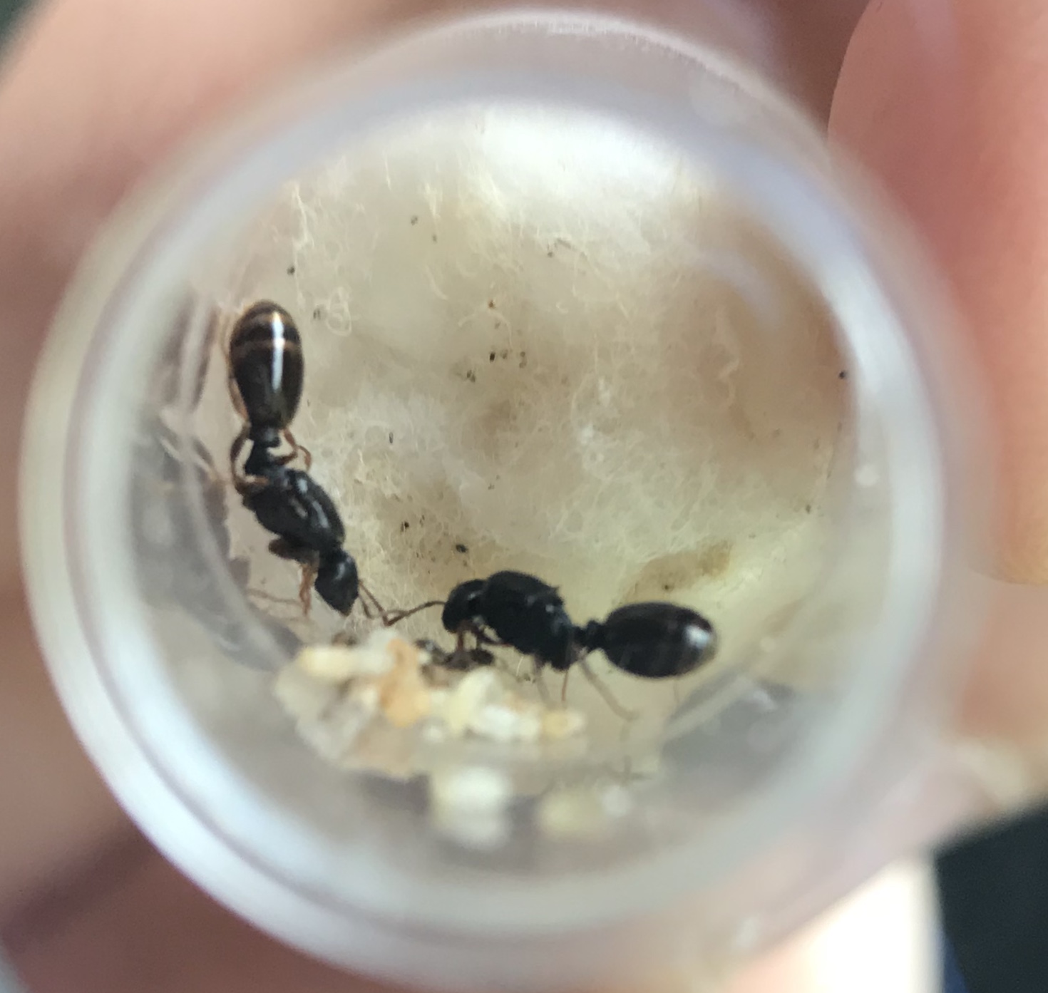Ho trovato queste due regine un mesetto fa, misurano intorno agli 8mm. In Spagna all’inizio ho pensato a Tetramorium sp. però adesso ho il dubbio se potessero essere una specie di Aphaenogaster.