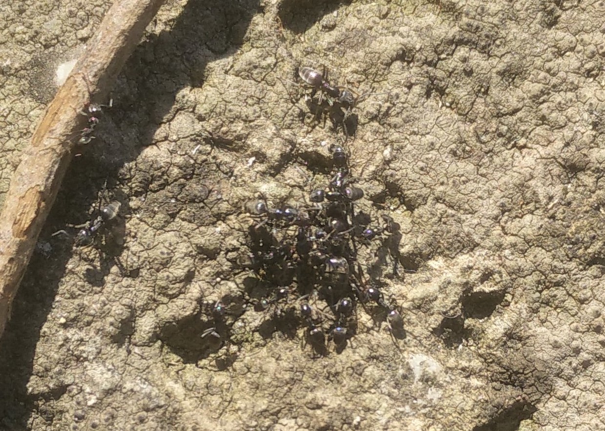 Ho fotografato questa scena pochi minuti fa su un muretto assolato nella periferia di Roma.
