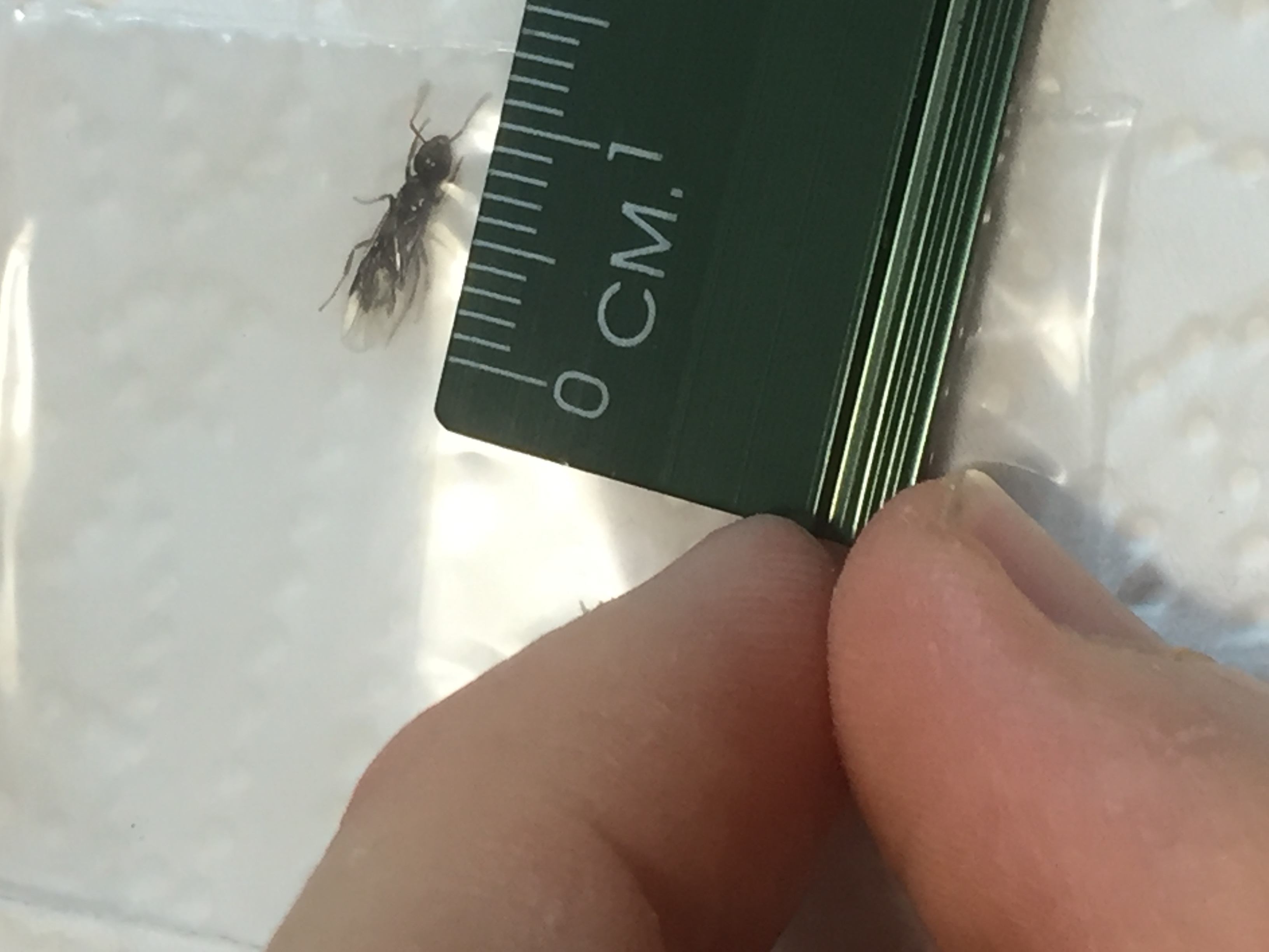 Sembrerebbe una Lasius, anche se da sopra le ali complicano l'identificazione, sarebbe utile una foto laterale. Per ora opterei per Lasius niger.