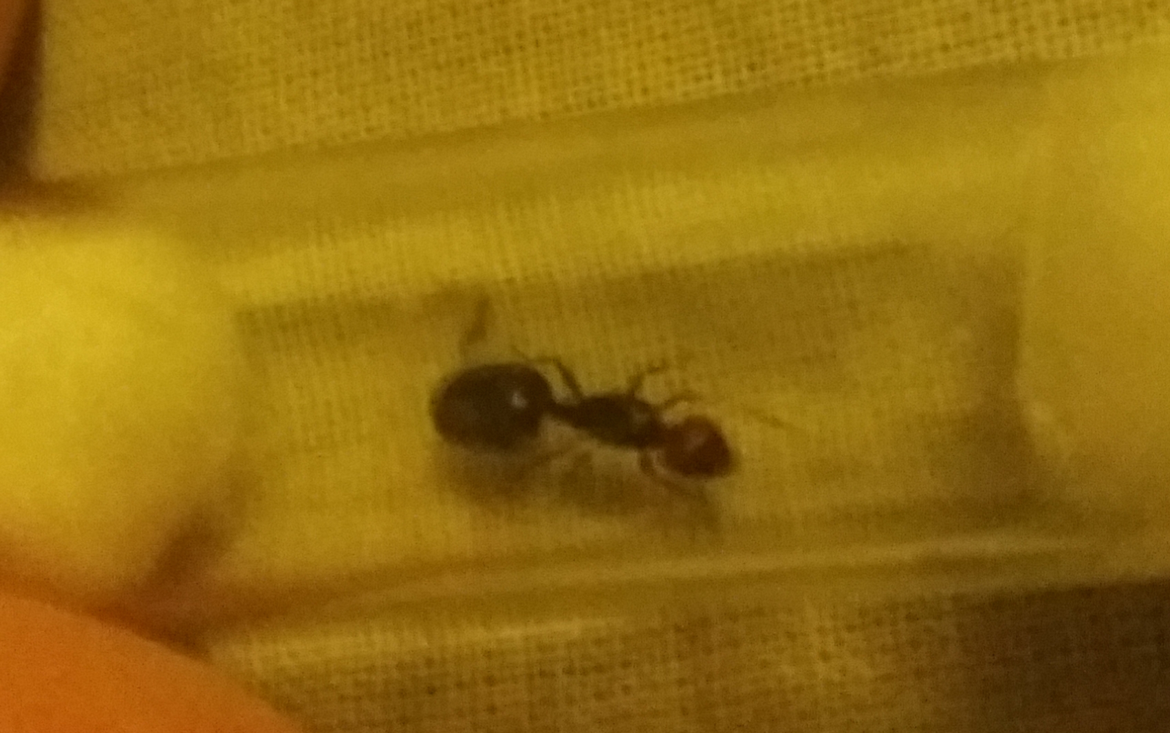 Ciao a tutti! Stasera ho trovato questa regina sotto un lampione, un giorno dopo un temporale. Misura circa 10 mm. Sembra una regina di Crematogaster scutellaris, e, anche se dalla foto non si direbbe, ha il gastro appuntito, e ha testa chiaramente rossa. Ho anche notato che, a differenza delle regine che ho catturato, non consuma il miele che le ho fornito, lo ha ispezionato con le sue antenne e basta. Grazie a tutti!
