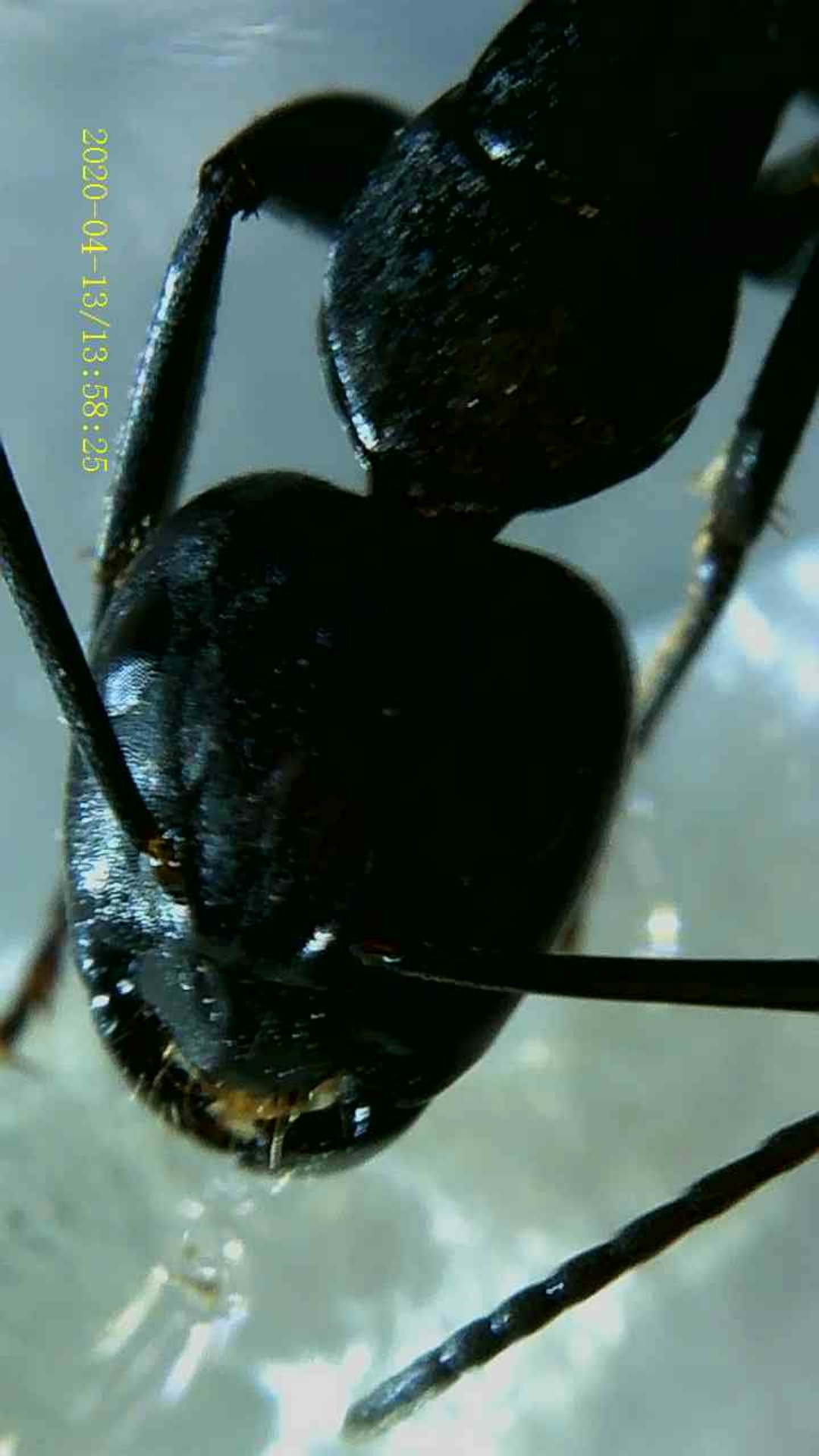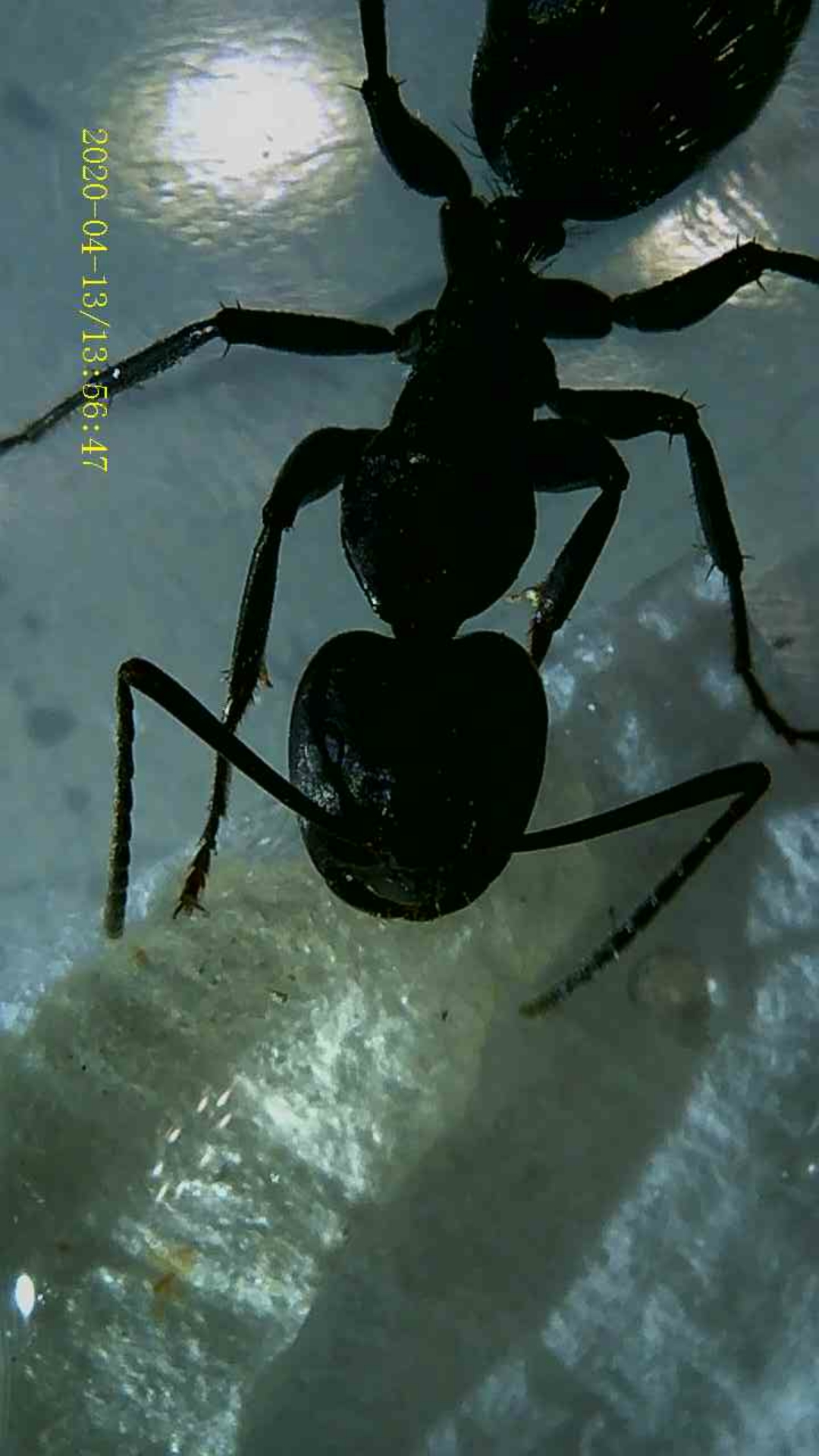 Salve a tutti! Questa formica proviene da una colonia che abita un vecchio ceppo di albero nel mio giardino da diversi anni. Queste formiche sono divise in major e minor (quella in foto è minor, e misura poco più di 1 cm), sono interamente nere, veloci e molto aggressive (appena cerco di interagire con loro, corrono furiose all'attacco con mandibole aperte e capo alzato). Credo siano Camponotus, e mi chiedo se si possa riconoscere la specie da queste foto. Ho sempre creduto fossero delle C. vagus, ma non ho mai avuto una vera e propria conferma.