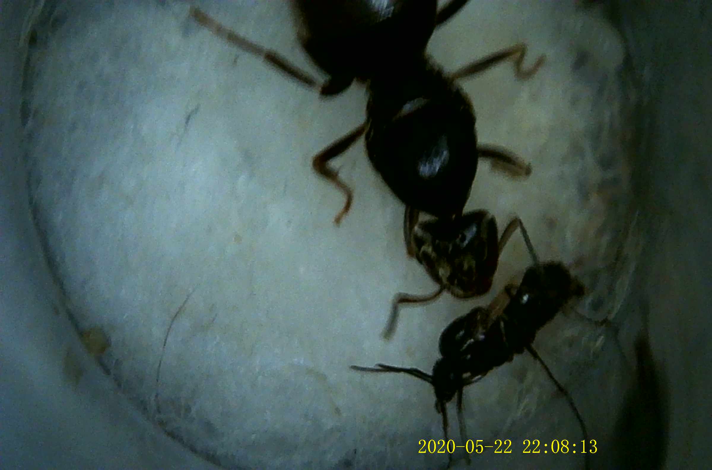 Dico che non teme luce e vibrazioni perchè, a differenza di altre regine che scattano da una parte all'altra nella provetta, rimane ferma a vegliare sulle uova quando prendo in mano la provetta per controllarla. La tengo in un cassetto dove ha fondato con successo una regina di Tetramorium, percui non penso sia un luogo freddo, ma potrei tranquillamente provare a cambiare posto. La controllo una volta a settimana, sono troppo curioso! La provetta è perfetta, il cotone non è nemmeno ammuffito, e il serbatoio è quasi pieno. A questo punto, se non nascono operaie prima dell'inverno, iberna lo stesso?