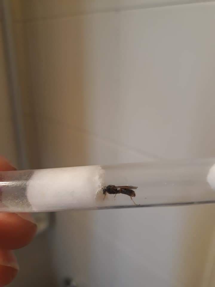 Lunga circa 1 cm, è una formicina e ha le zampe arancioni, e arancione è anche la fine del gastro,sui genitali.