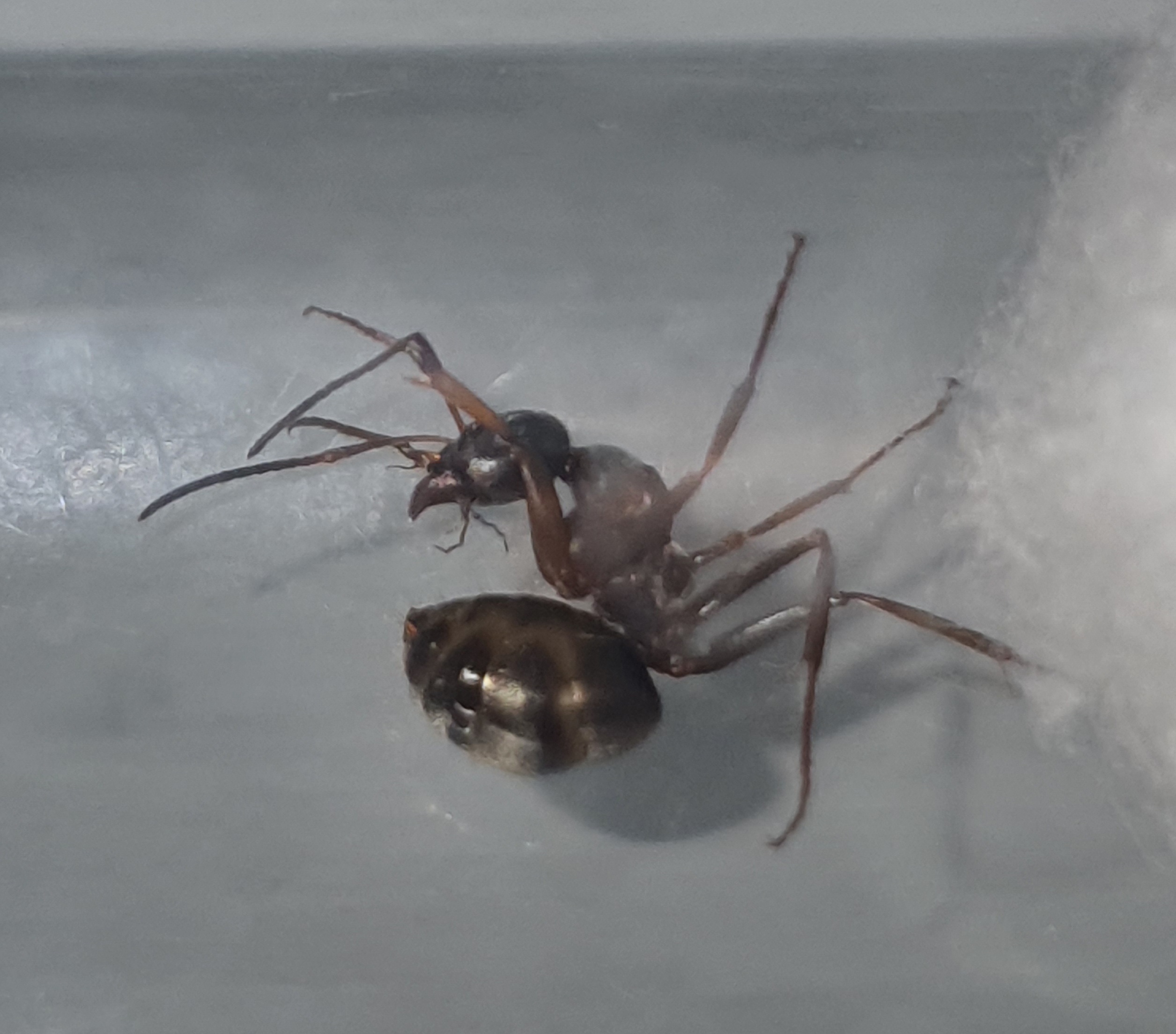 Ragazzi dopo ore di presunta morta nella stessa posizione, la rivedo ora ed ha ripreso vita. Da quando le formiche fingono la morte? Non mi era mai capitato di vedere un comportamento simile!