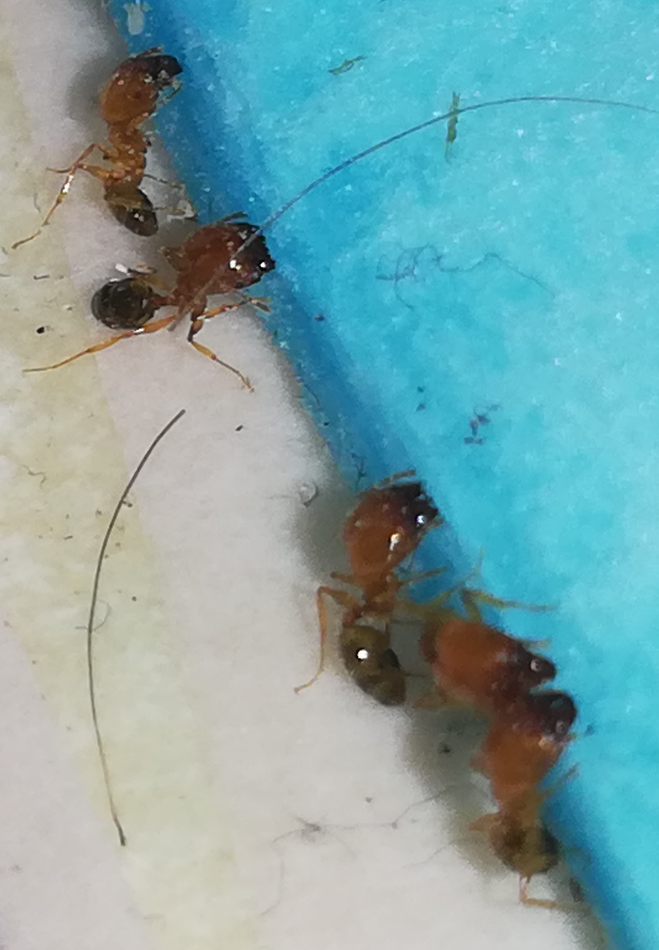 In aggiunta volevo dire che le dimensioni sono circa di 3,7mm per le più grandi e 2,5mm circa per le piccole non le ho misurate fisicamente ma ho preso la misura reale del tappetino celeste e ho visto a quanto corrispondeva nella foto tramite un tool e ho trovato la proporzione da lì sempre tramite lo stesso tool ho visto la lunghezza delle formiche e ho trovato la lunghezza reale in proporzione al tappetino. Ovviamente sono consapevole che non è precisa ma solo per avere un idea. Grazie mille