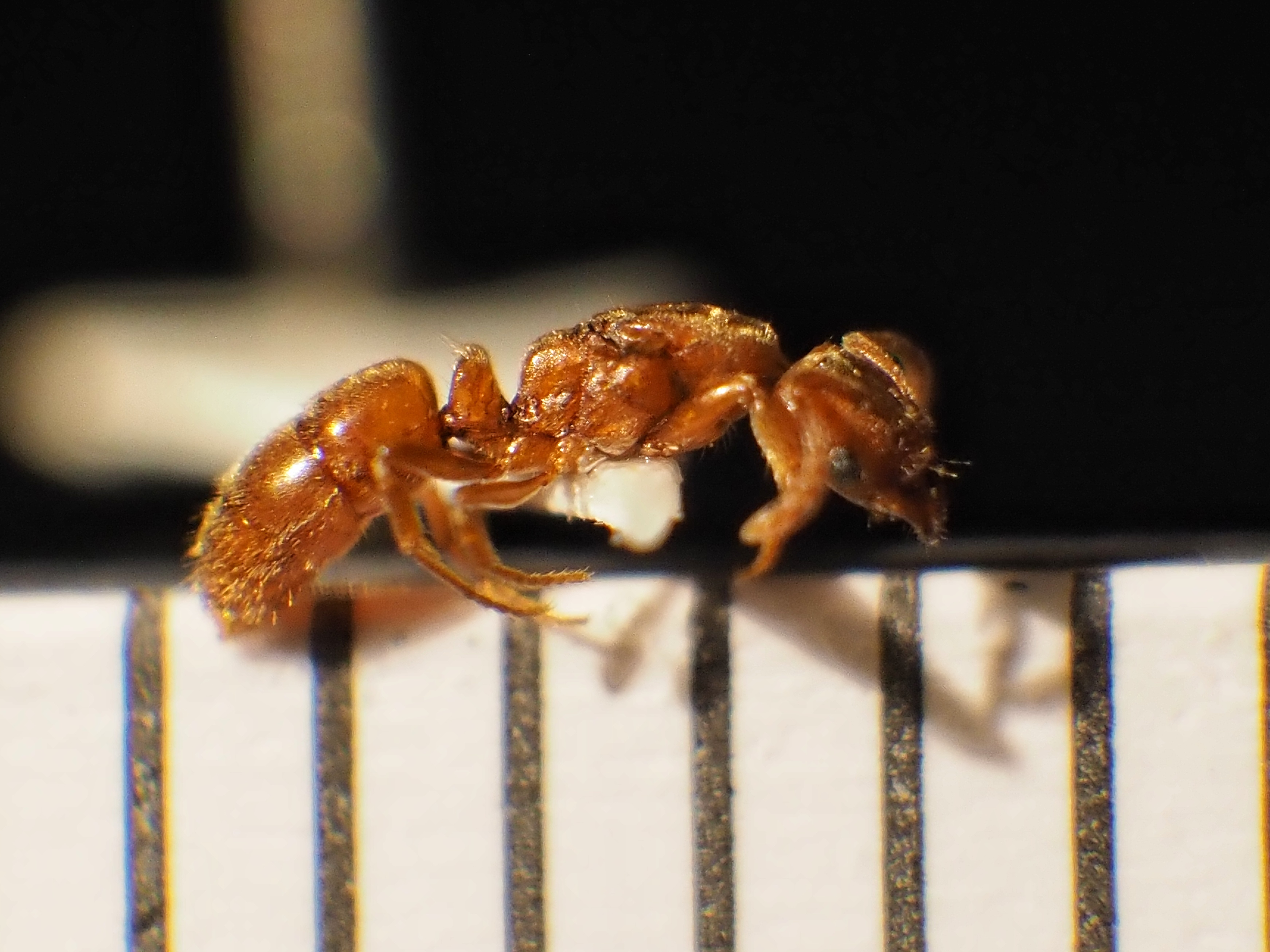 Volevo sapere se qualcuno sa dirmi di che specie è questa formica, l´ho trovato morta insieme ad altre due vive sotto un vaso qualche giorno fa a Chiavenna (SO). Potrebbe essere una regina di Ponera coarctata ?