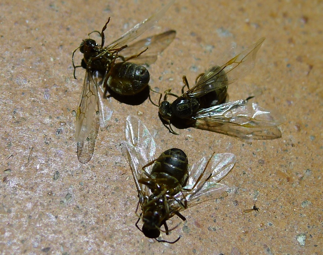 Non mi sembra siano uguali alle altre regine che ho visto in giro contemporaneamente e che ho pensato potessero essere Lasius emarginatus, queste mi pare abbiano il torace del colore del resto; Cremona, 28 giugno 2016, trovate morte alla base di un muro rivolto a sud.