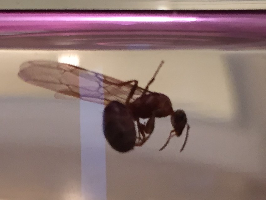 allego la foto di una formica alata che ho trovato poco fa, credo sia una regina ma che purtroppo non sia stata fecondata.