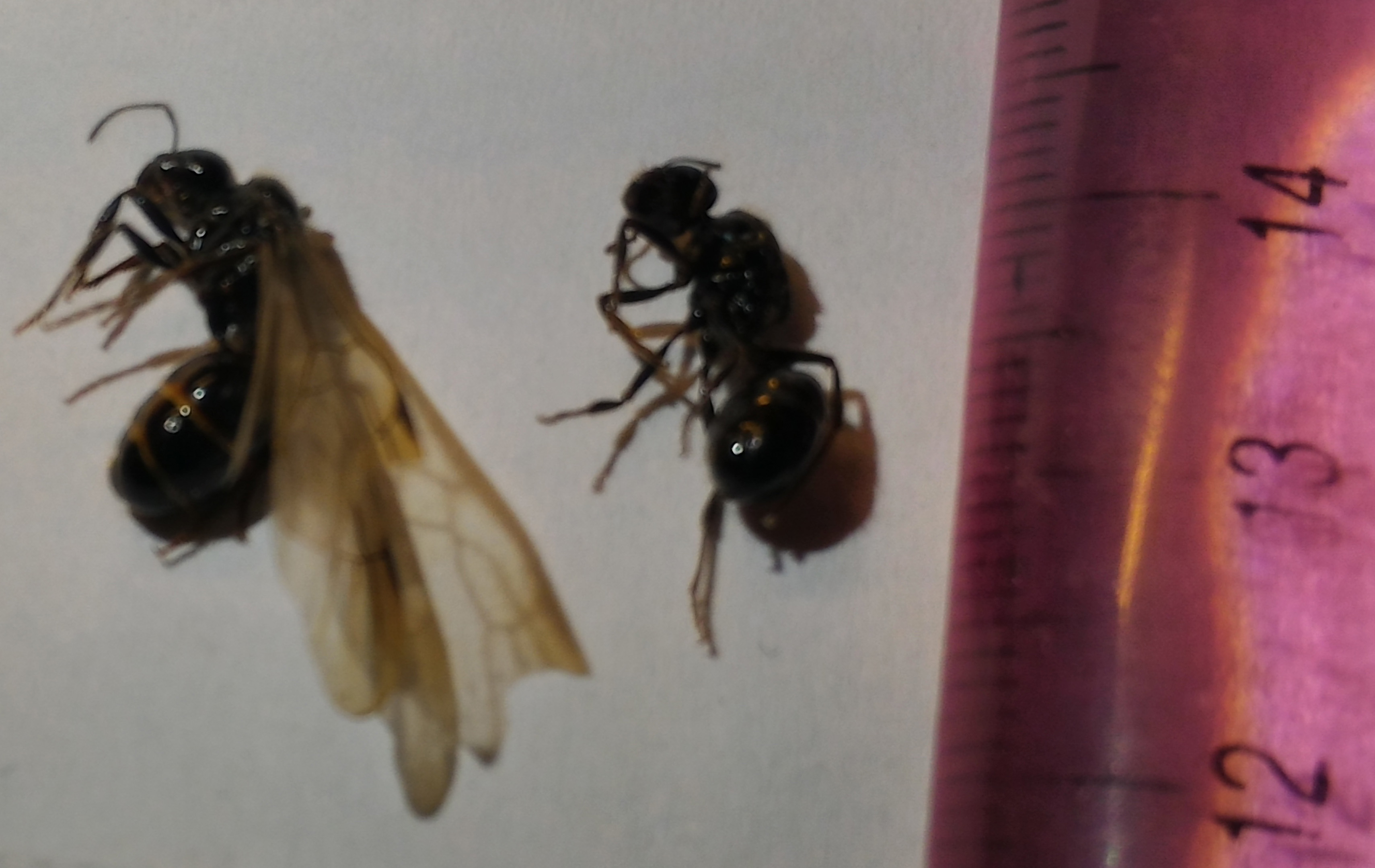 note: la regina ancora alata è entrata da sola dalla provetta e non è più uscita, nonostante ho lasciato l'imboccatura aperta. Dopo qualche giorno, la facevo cadere ma rientrava da sola nella provetta. ha cambiato dopo il colore dell'addome dopo, prima era tutto nero.