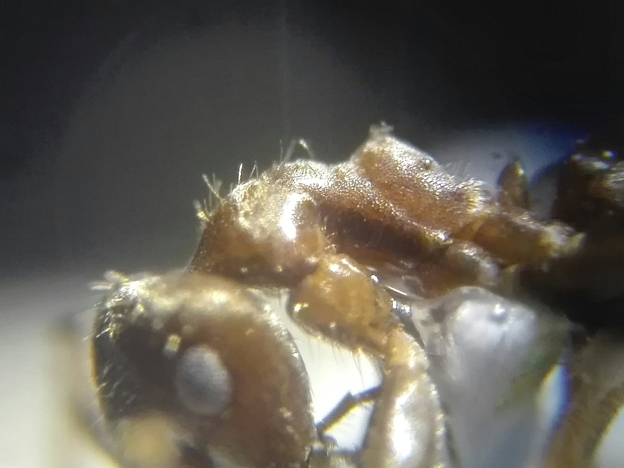 Quello che vorrei vedere meglio, se riesci a fare le foto, sono un'immagine frontale della testa dove si vedono bene a fuoco le setole occipitali ed una dei palpi di profilo e della gula.