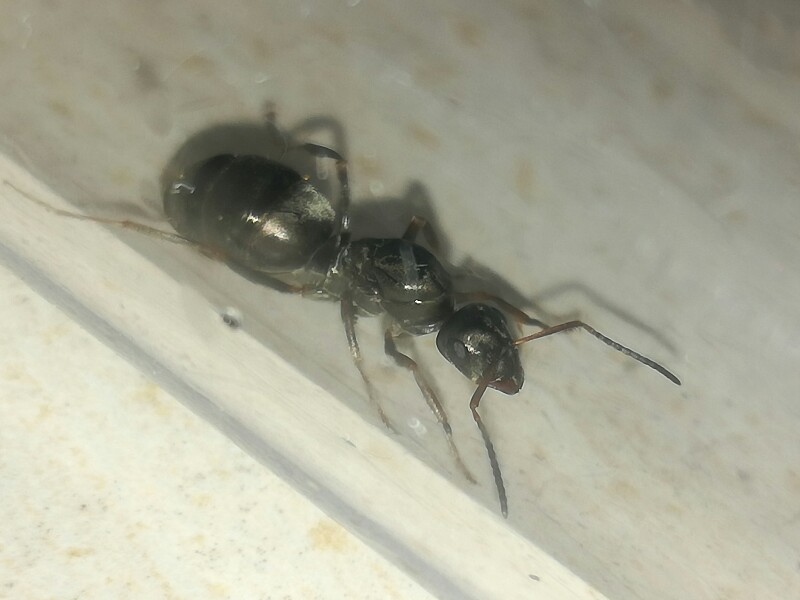 Ciao a tutti, oggi nel mio giardino ho effettuato un controllo delle specie a casa mia e, alzando una pietra ho trovato diverse operaie di Formica cunucolaria, non erano presenti uova larve o bozzoli, SOLO operaie, ma una di esse era un po' più grande, sembra avere delle cicatrici sull'addome ed è lunga 8.3mm ma mi sembra strano che una regina si metta nella parte più alta del nido... sapreste identificarla? Grazie in anticipo.