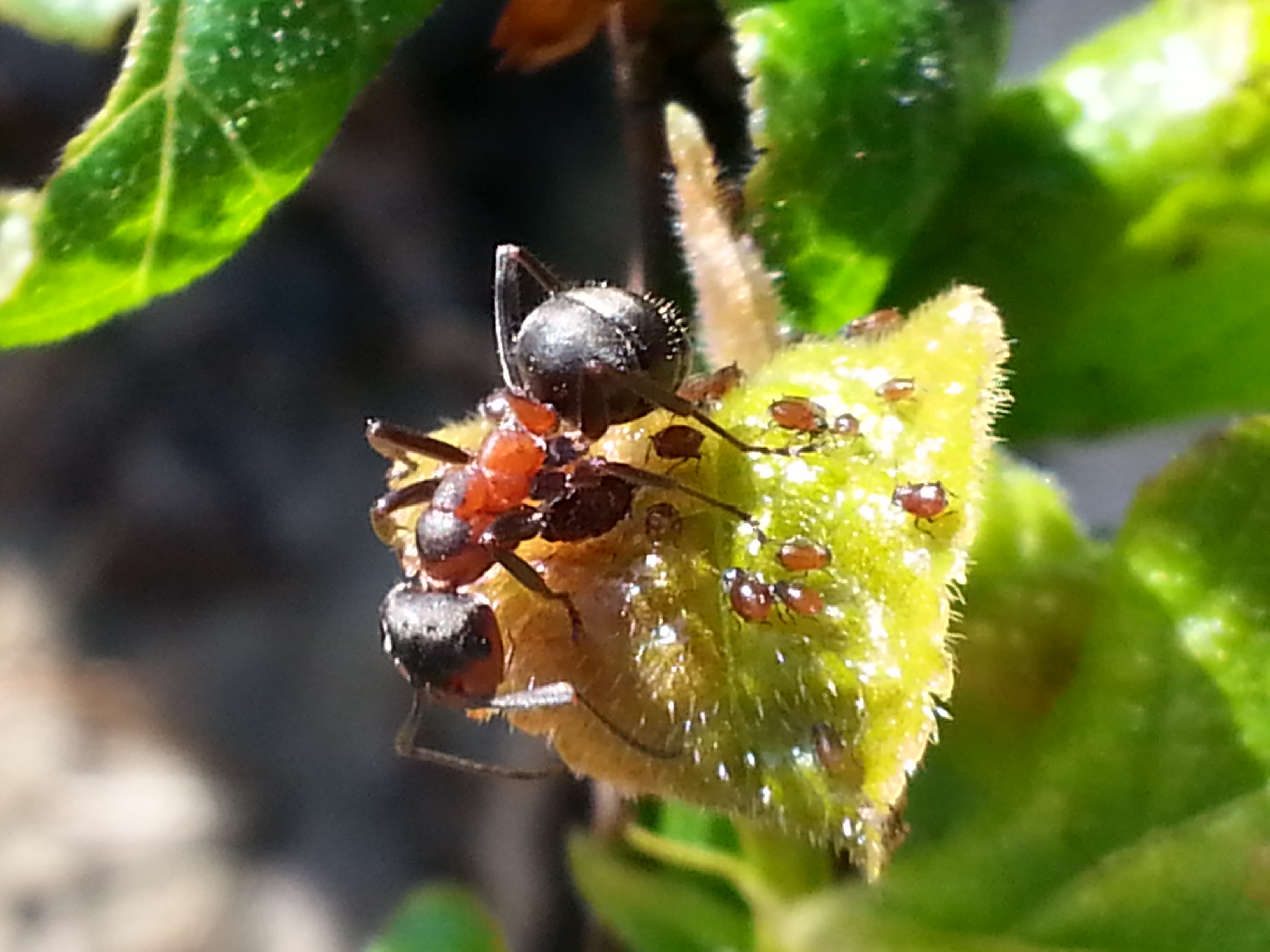 Hai ragione, confine fra Abruzzo e Molise. Località Rionero Sannitico. Le operaie sembravano cibarsi della sostanza rilasciata da piccoli afidi attaccati alle foglie.