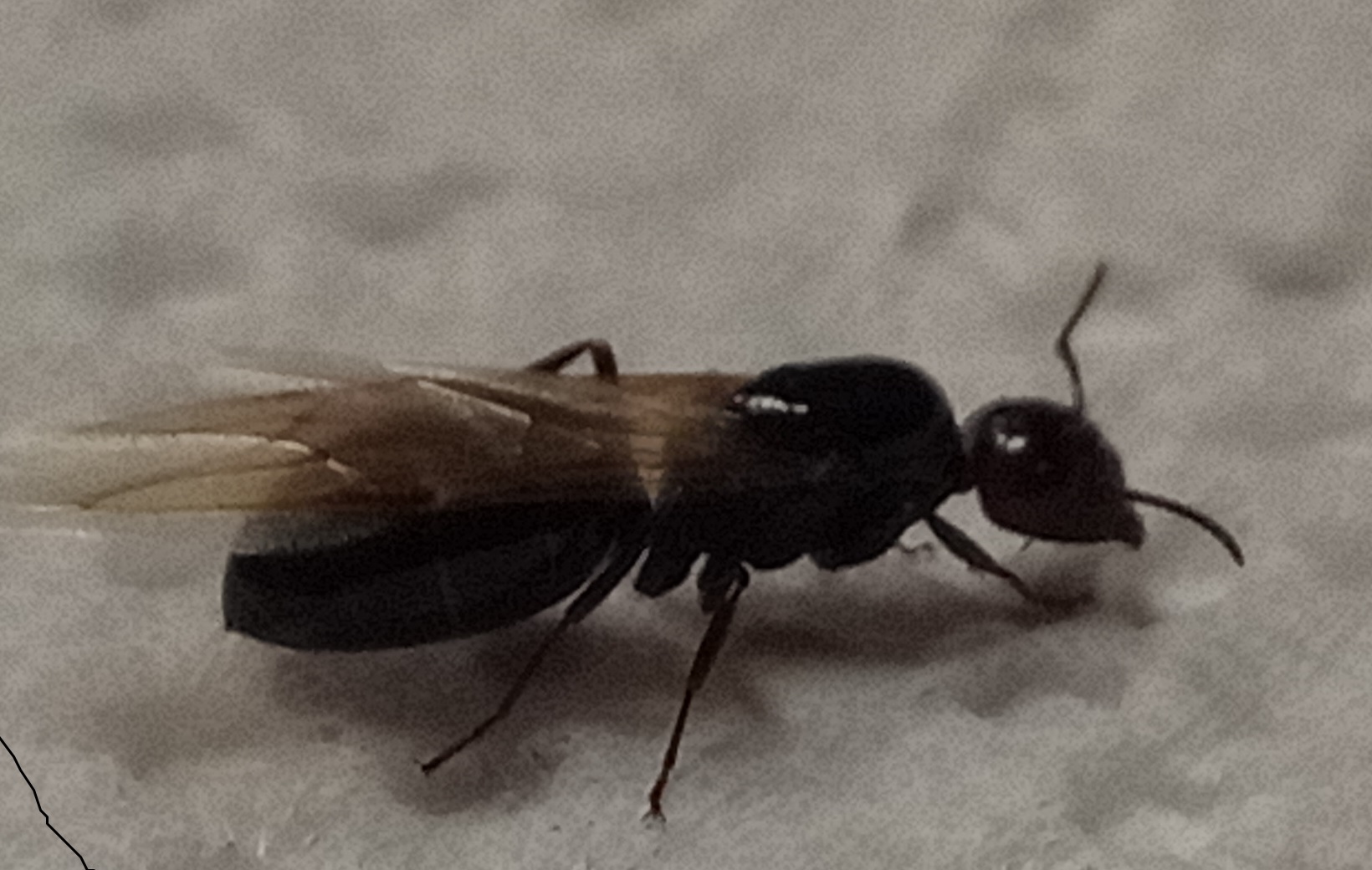 in data 12-5-2017 sono stato testimone di una sciamatura "piovuta" dal cielo sulla spiaggia di Rimini. Lungo la battigia, al cambio di vento, prima da terra, poi da mare, sono arrivate centinaia di formiche alate, alcune di grandi dimensioni (1.5/2cm) che ho identificato io stesso da neofita come Camponotus vagus, ma , tra di loro, c'era chiaramente anche la numerosa presenza di un'altra tipologia di formica, più piccola, di cui ho raccolto e improvettato 3 regine di cui riporto la foto.