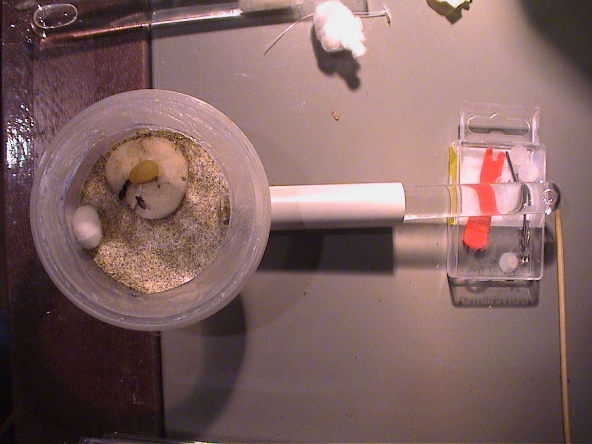 il tutto collegato ad una piccola arena, oscurando la provetta con un pezzetto di cannetta per impianti elettrici...