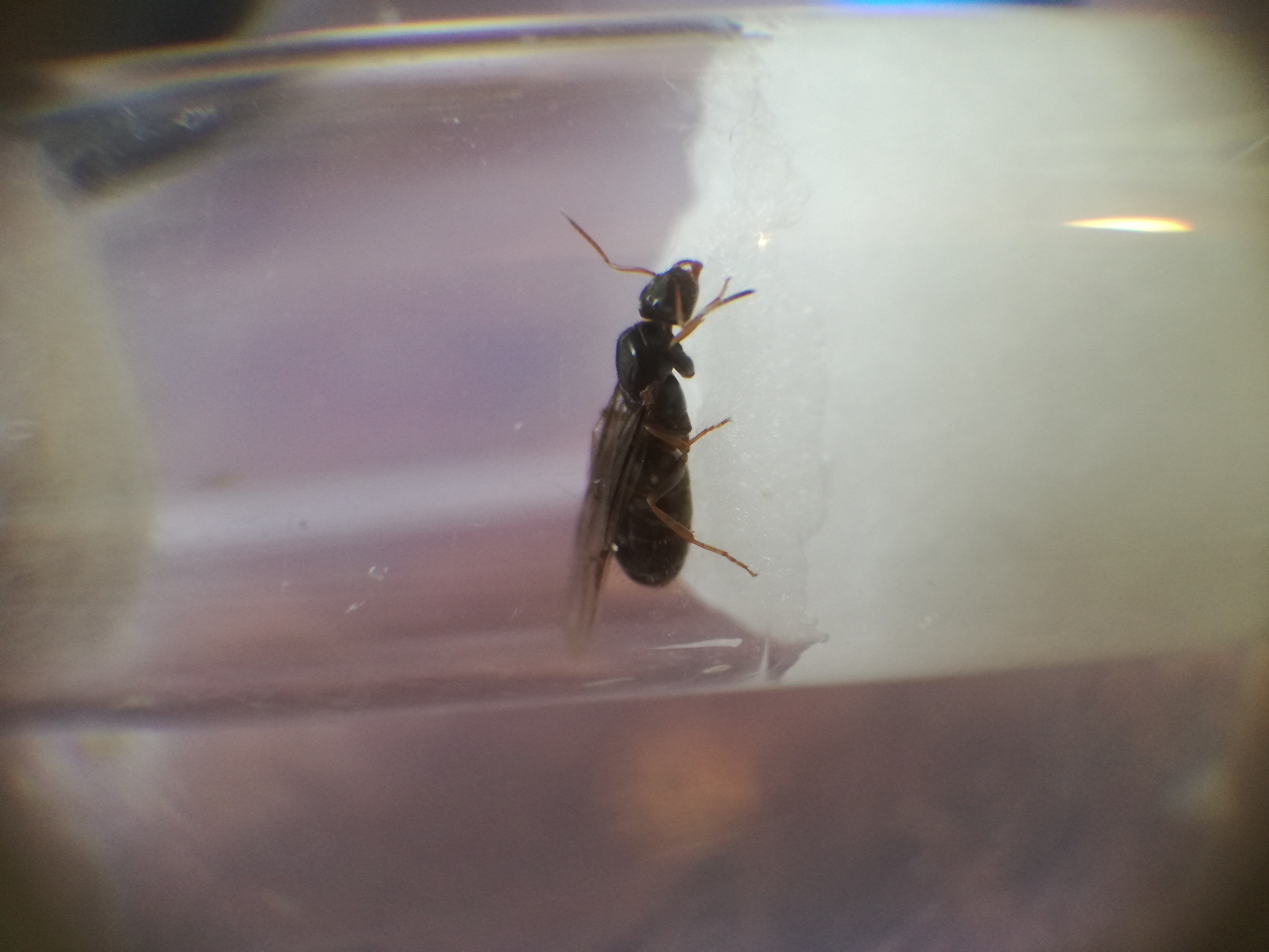 Di seguito posto qualche foto di un maschio per l'identificazione, dimensioni come le operaie ossia 3-4 mm, e anche qualche (pessima) foto di una operaia dentro una scatola in plastica opaca. Nel caso cerchero' di fare foto migliori con lo stereoscopio.