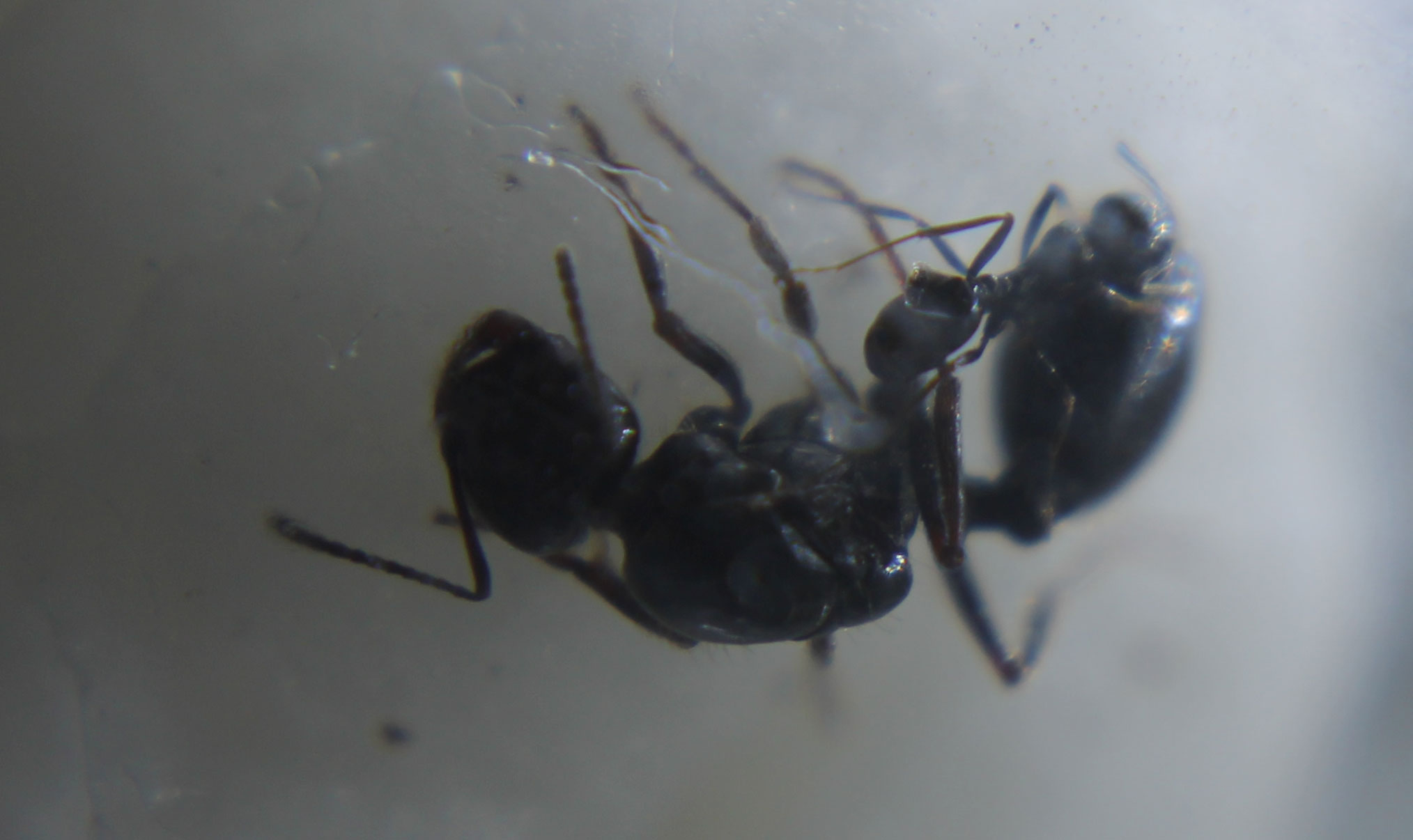 Il primo ritrovamento è avvenuto mentre scavavo una buca per seppellire un povero piccolo toporagno che ho trovato morto, riverso una badilata di terra e in una sacca spuntano ste due formiche, intorno nient'altro.