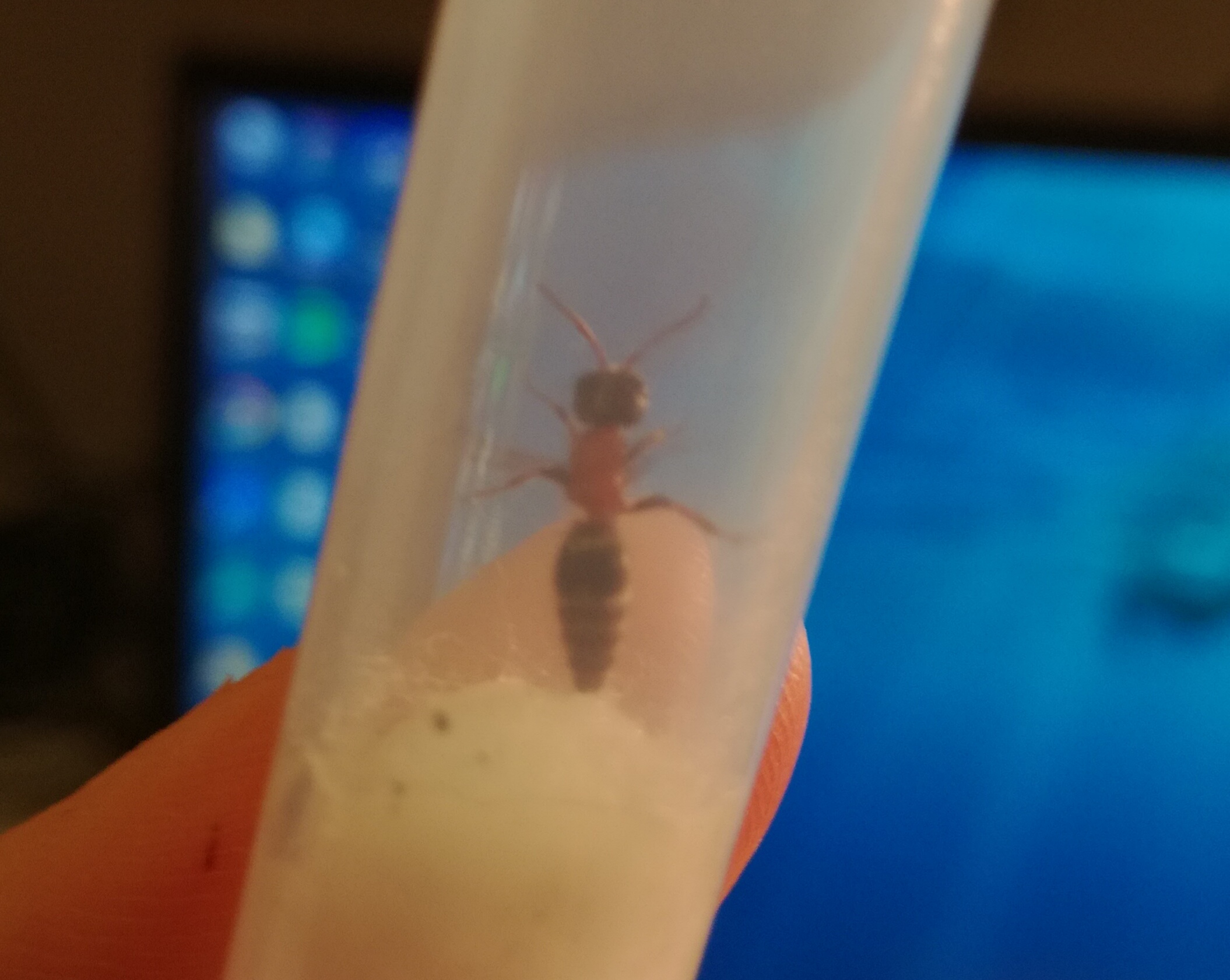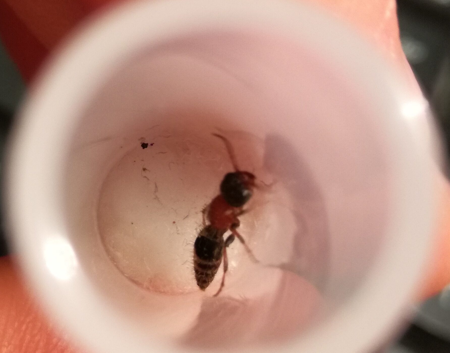 Ciao a tutti! Ho trovato questa che correva tra nidi di Messor, zampe rosse e torso rosso massiccio ma niente ali.