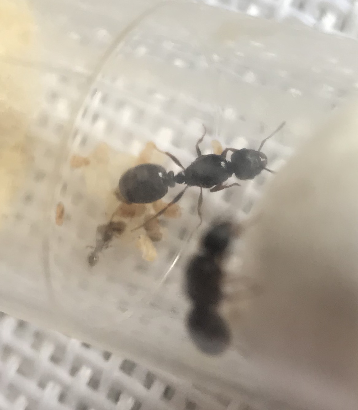 Ho trovato queste due regine un mesetto fa, misurano intorno agli 8mm. In Spagna all’inizio ho pensato a Tetramorium sp. però adesso ho il dubbio se potessero essere una specie di Aphaenogaster.