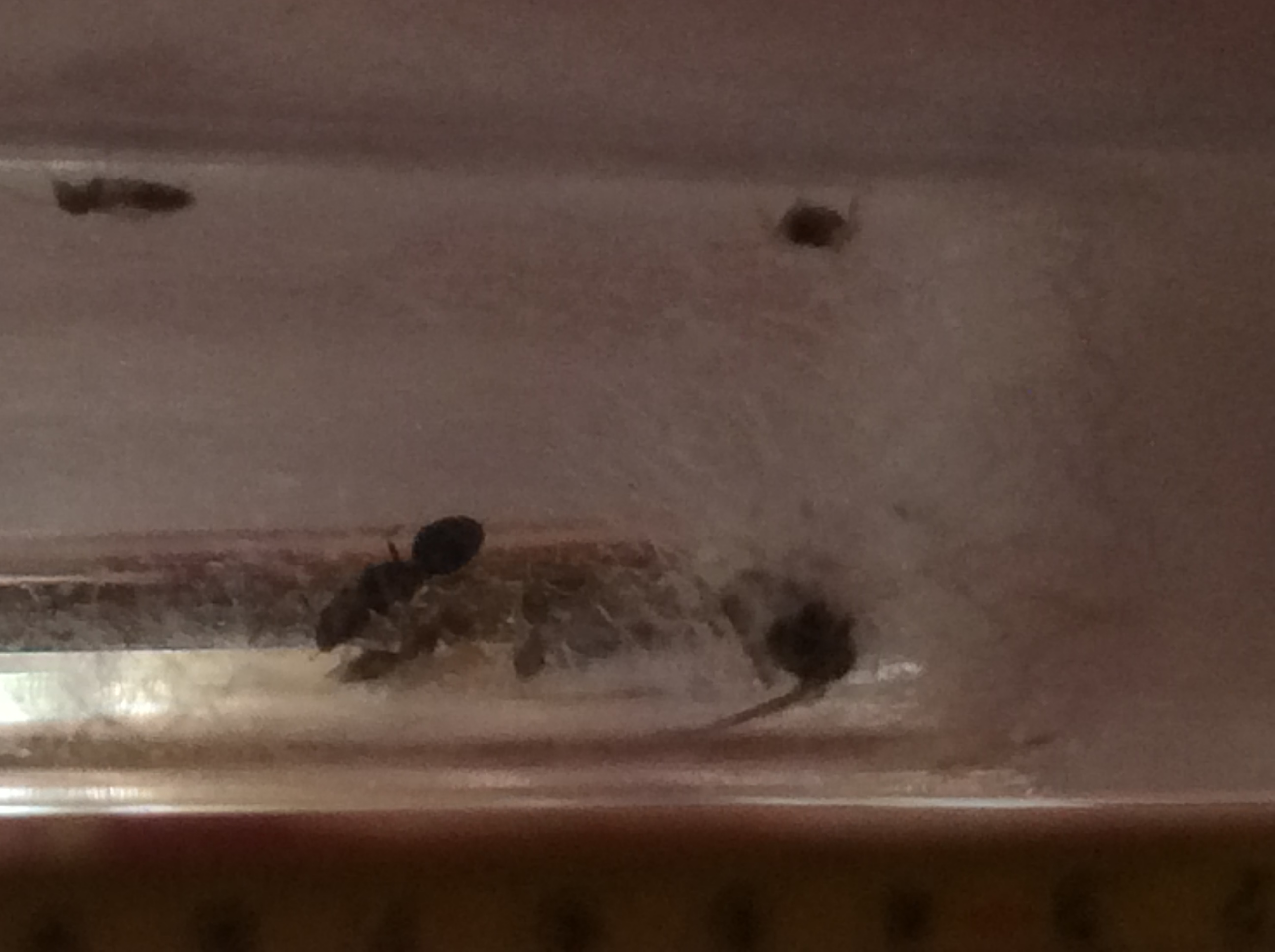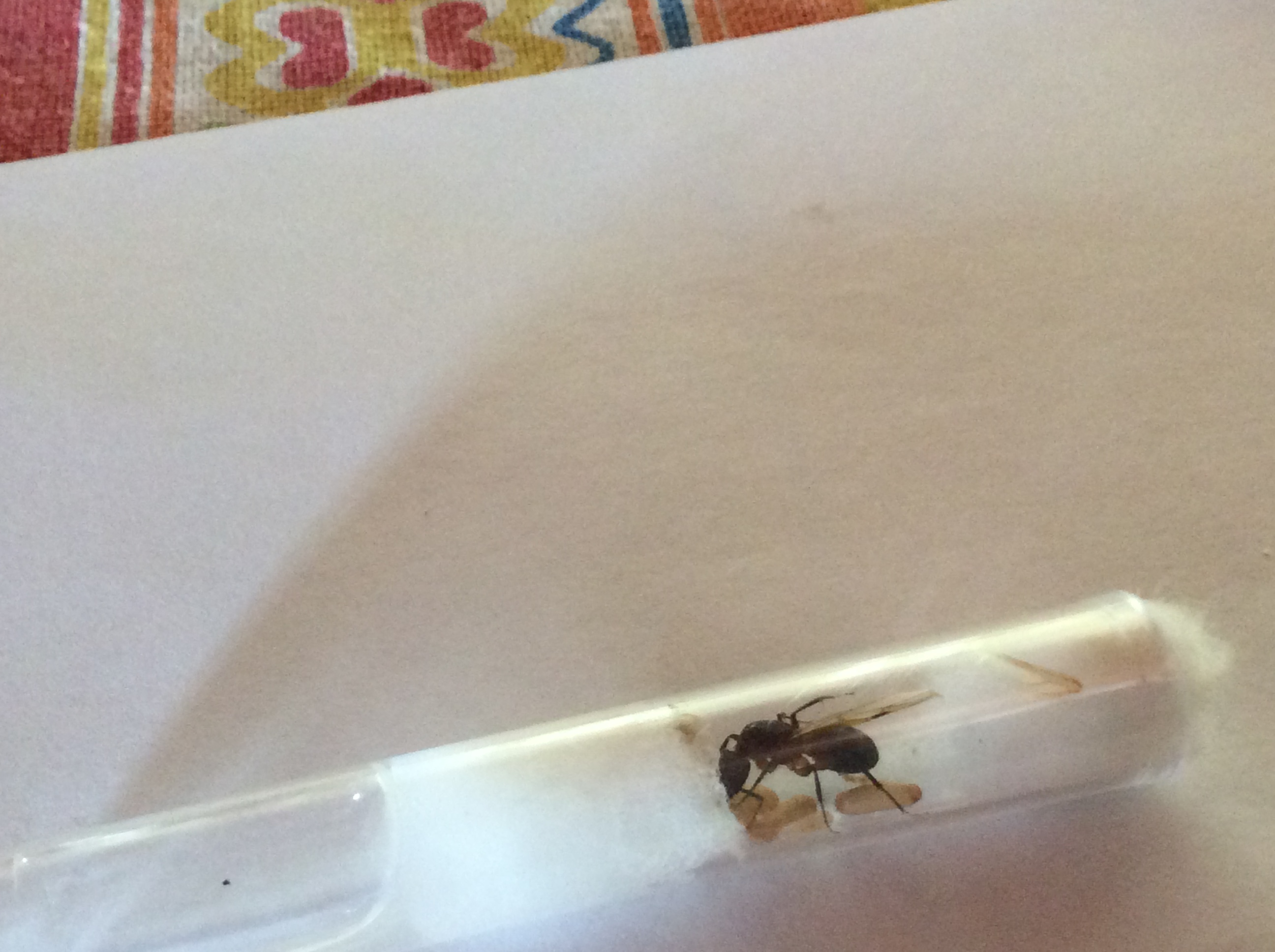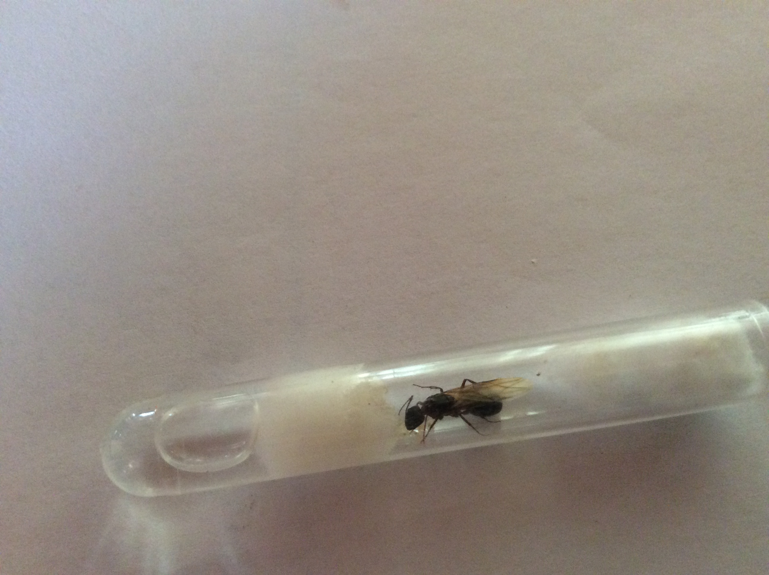 Ecco altre foto della prima regina con prole. Ci sono 2 operaie in più rispetto all'altra volta e oggi ricevono la loro prima goccia di miele. Spero siano leggermente migliori queste foto anche se fatte con un cell da battaglia.