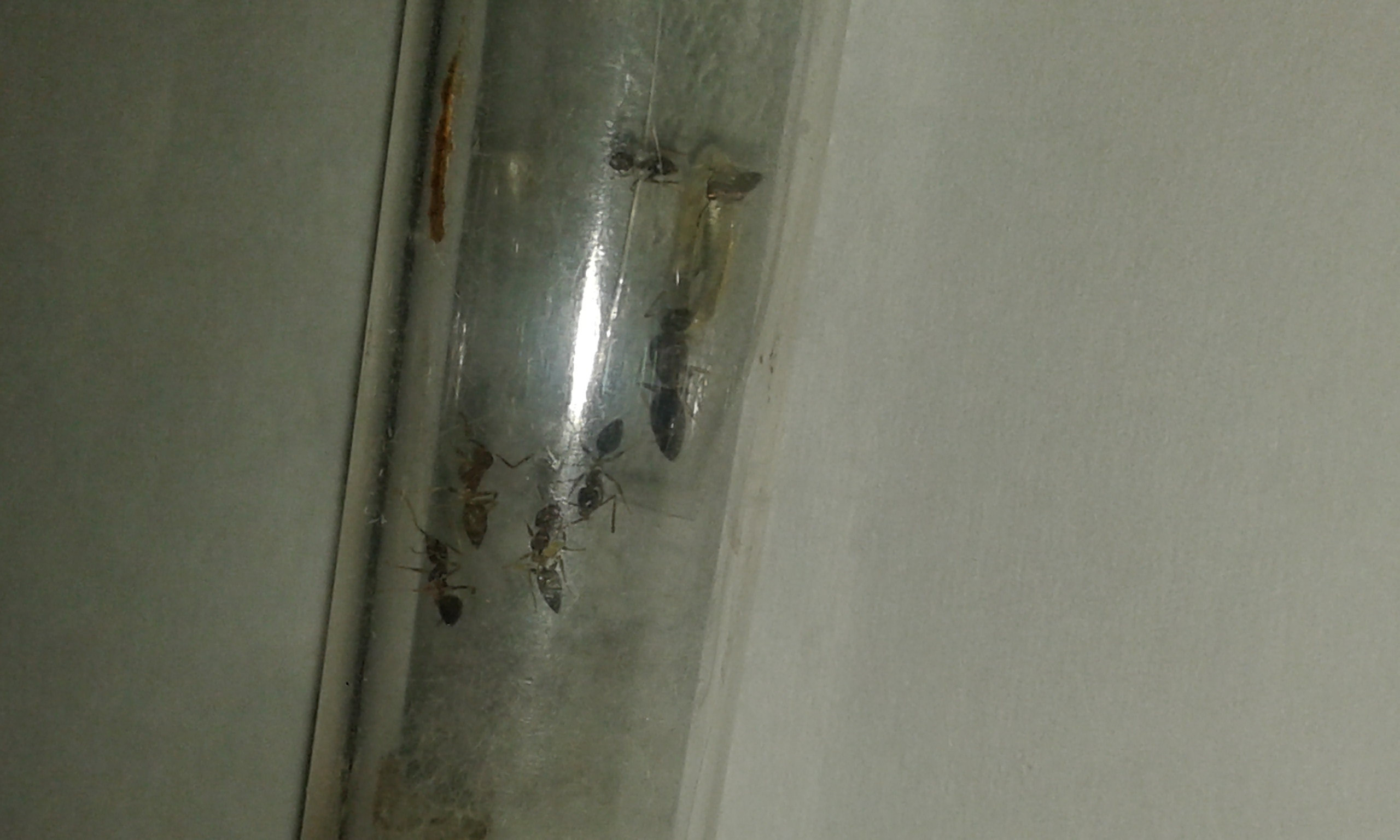 Le formiche nella prima foto potrebbero essere Dolichoderinae, in particolare Tapinoma o Technomyrmex. Qusti due generi hanno spesso questo aspetto piatto di profilo, le Nylanderia molto spesso, ma non sempre, sono piu' rotondeggianti. Considerando la qualita' della prima foto potrebbero essere anche marziani, attendiamo foto piu' chiare.