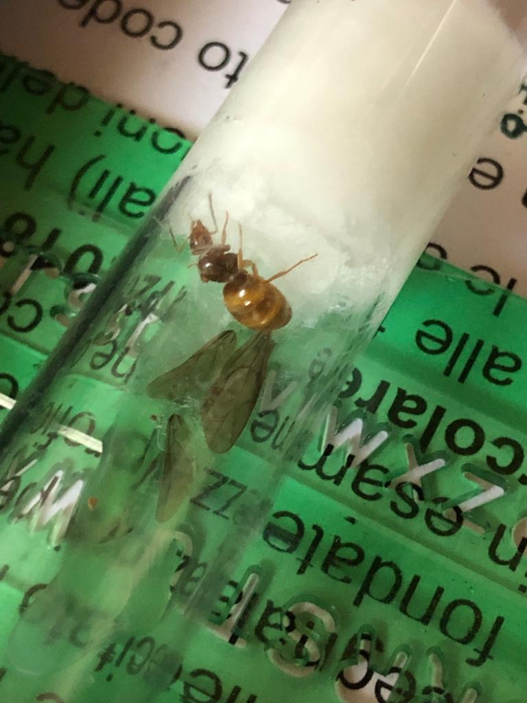 È lei.. ne ho trovata una dealata oggi, ed è da una settimana che vedo maschi alati..fondazione solita in provetta, solo ha bisogno di temperature molto più fresche delle altre d’estate..
