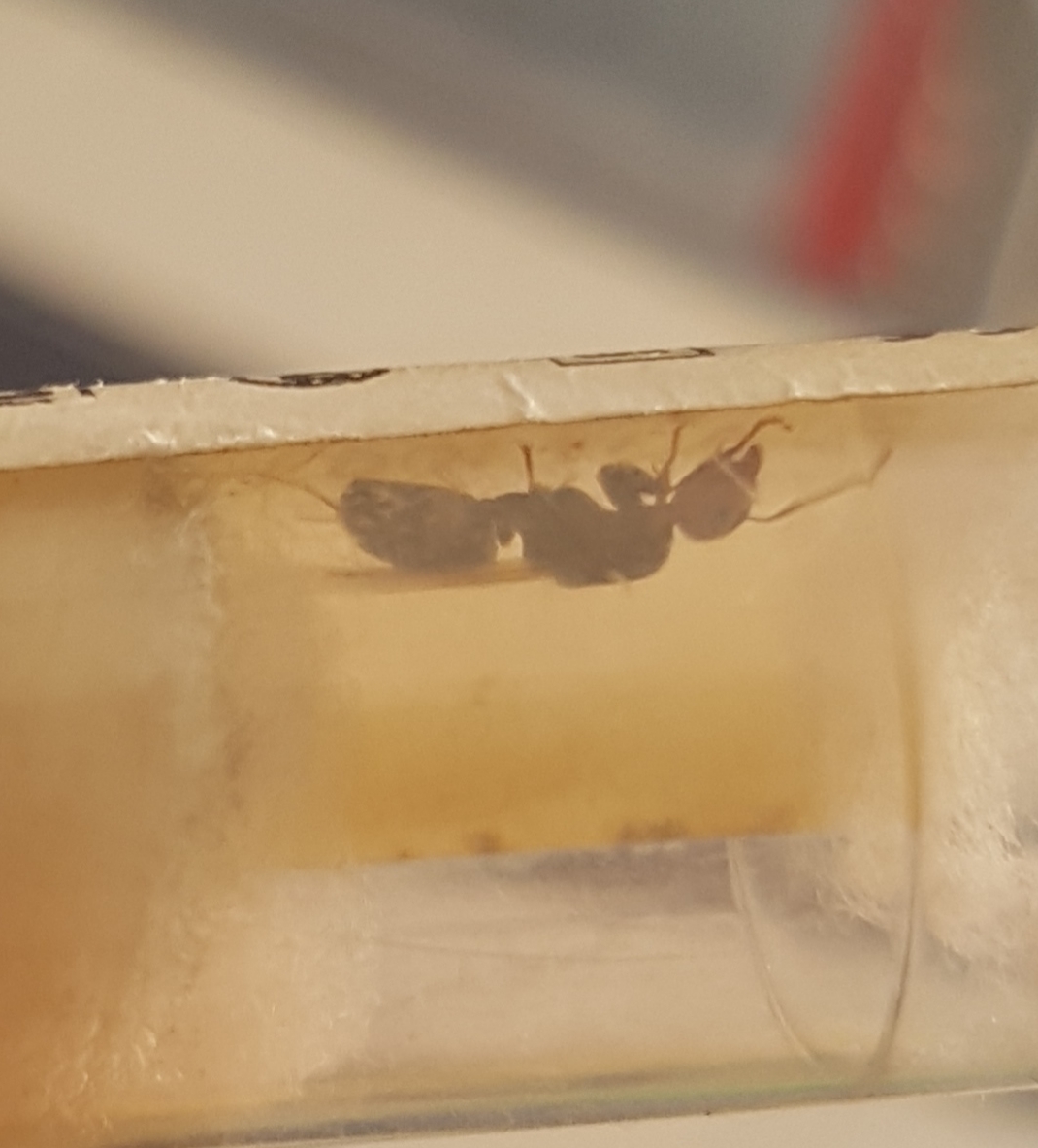 Oh no! Perdonatemi per il clamoroso errore! Devo ammettere che il gastro non mi convinceva, ma la testa rossa mi ha fatto credere che fosse una Crematogaster Scutellaris. Perdonatemi!