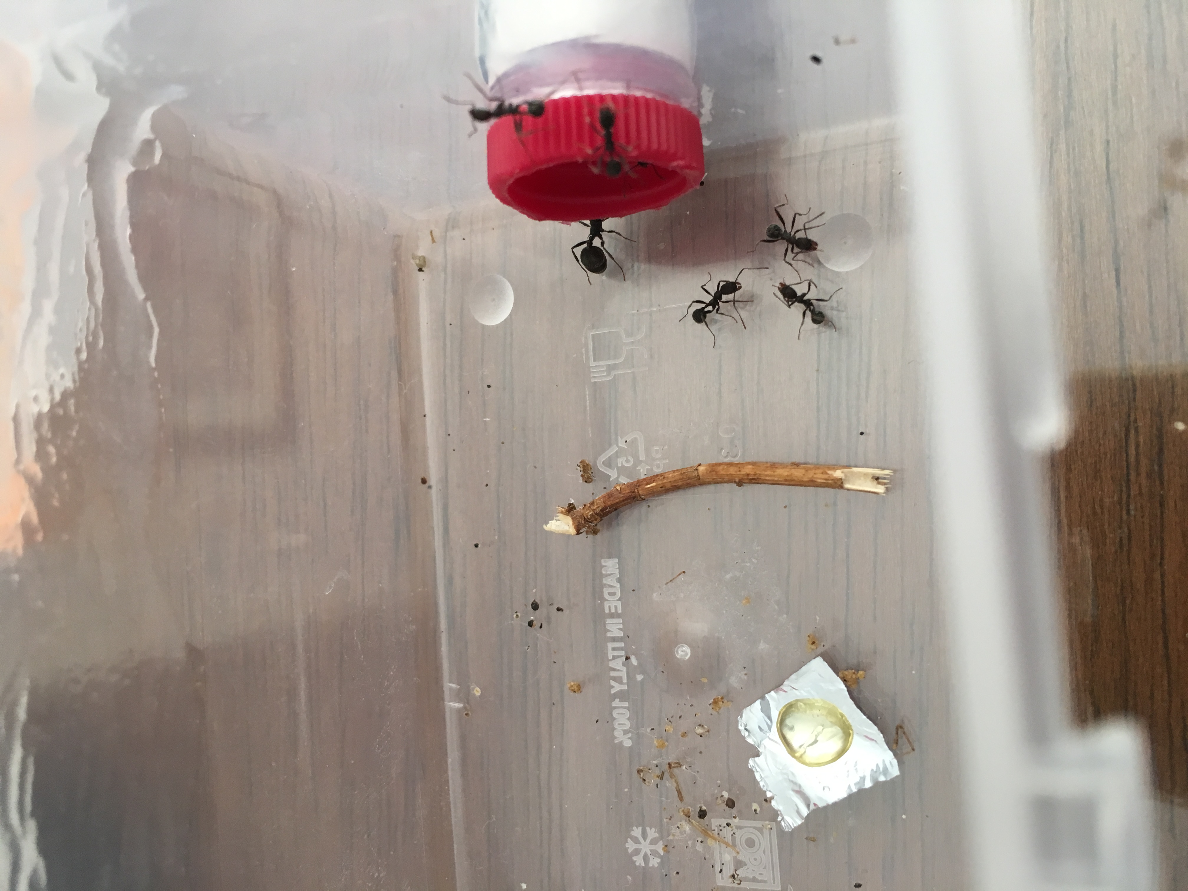 A meno che mi sta venendo il dubbio che ció possa essere dovuto al fatto che ho fornito alcune pupe che avevo trovato durante una gemmazione alla colonia qualche giorno dopo la cattura, e potrei aver fatto il pastrocchio di unire in questo modo le due specie... questo spiegherebbe anche il dimorfismo che ho riscontrato tra alcune operaie decisamente più grandi e che imputavo al semplice fatto che probabilmente fossero di generazioni successive. Potrei aver fornito ad una regina poliginica di A.campana delle pupe e delle larve della monoginica A.picena.