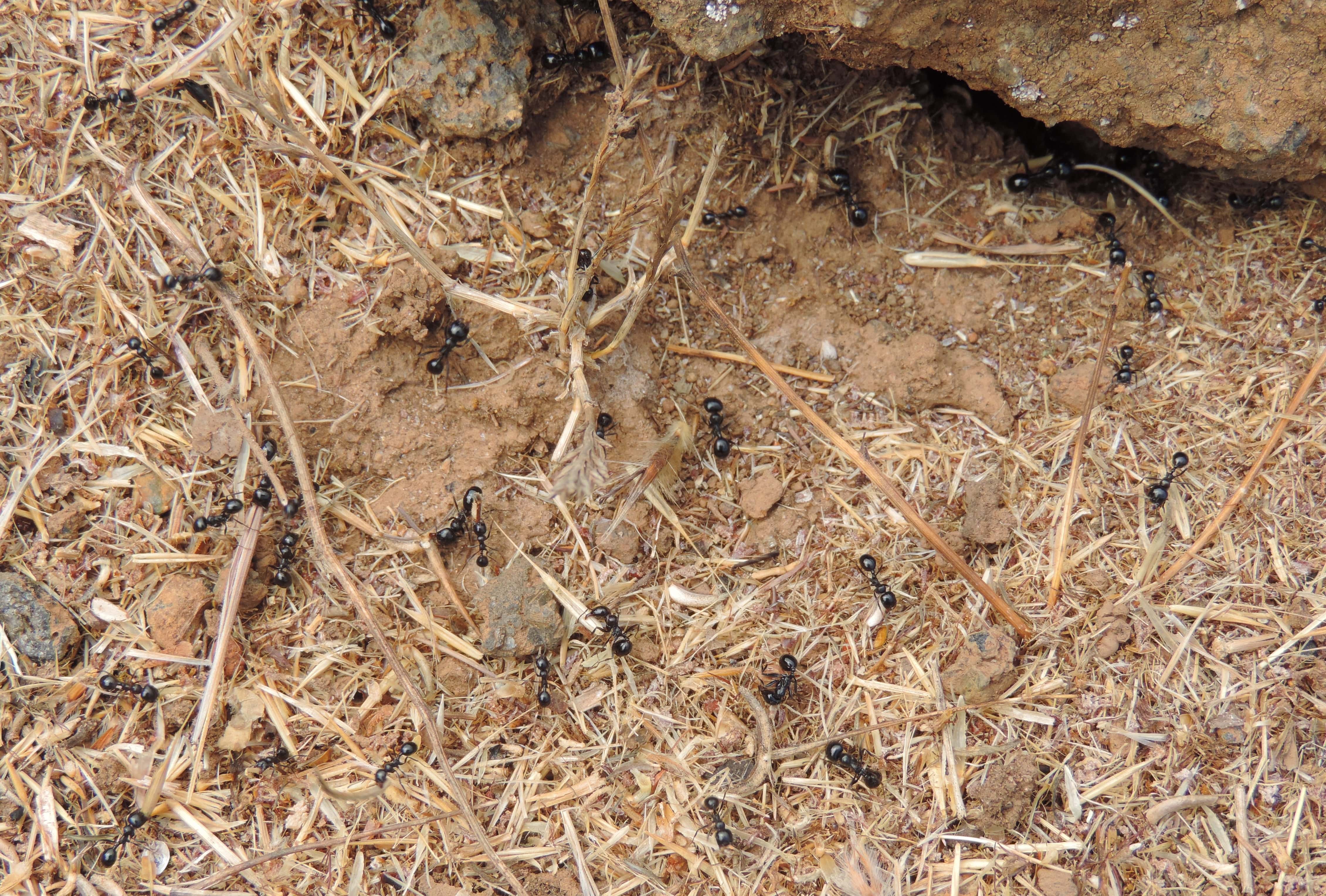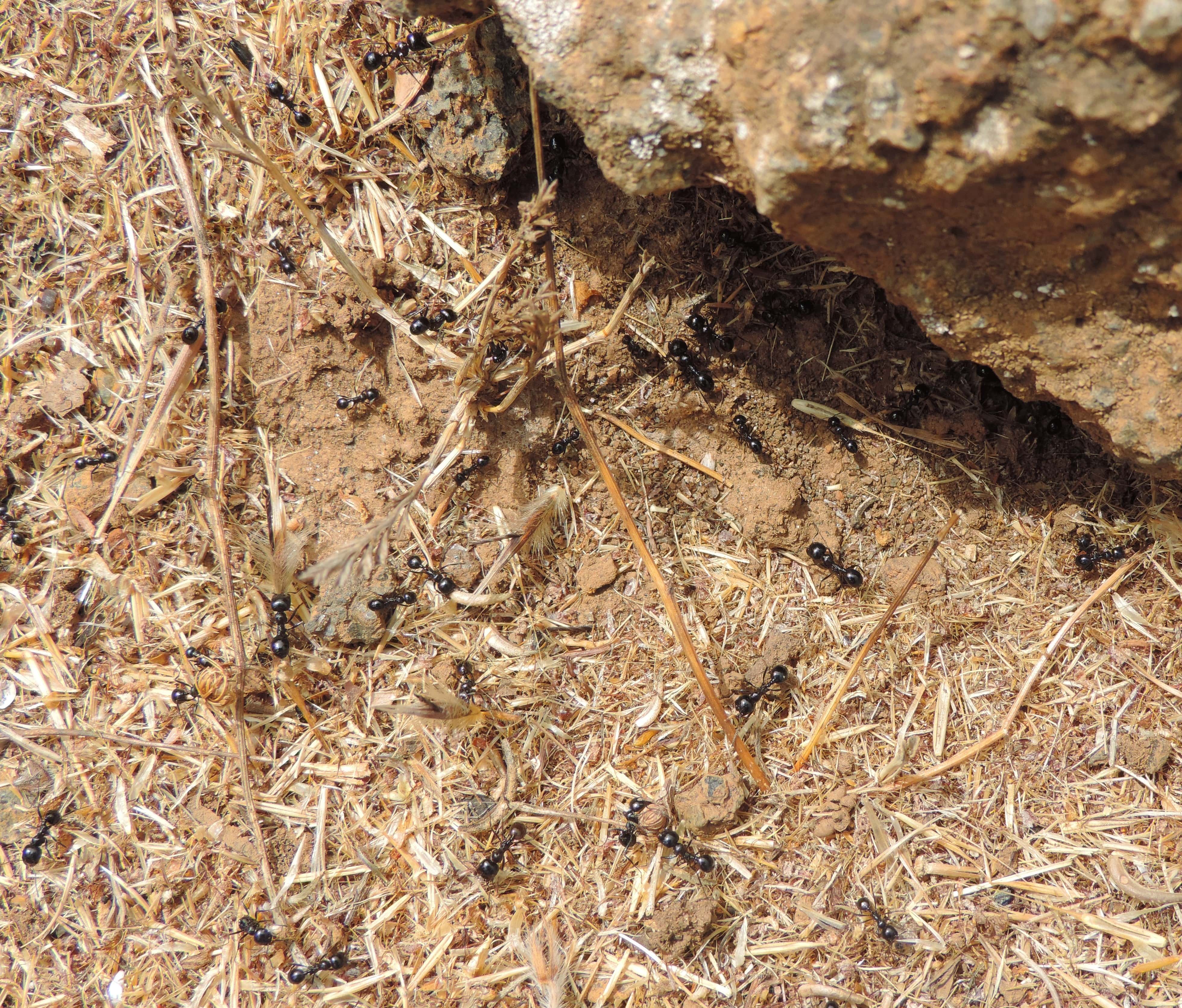 Fotografate lungo un sentiero quasi in cima a Montagna Grande a Pantelleria (TP), il 31 agosto 2017, potrebbero essere anche queste Messor sanctus/bouvieri, visto che sono quasi prive di peli? Sono due colonie differenti…