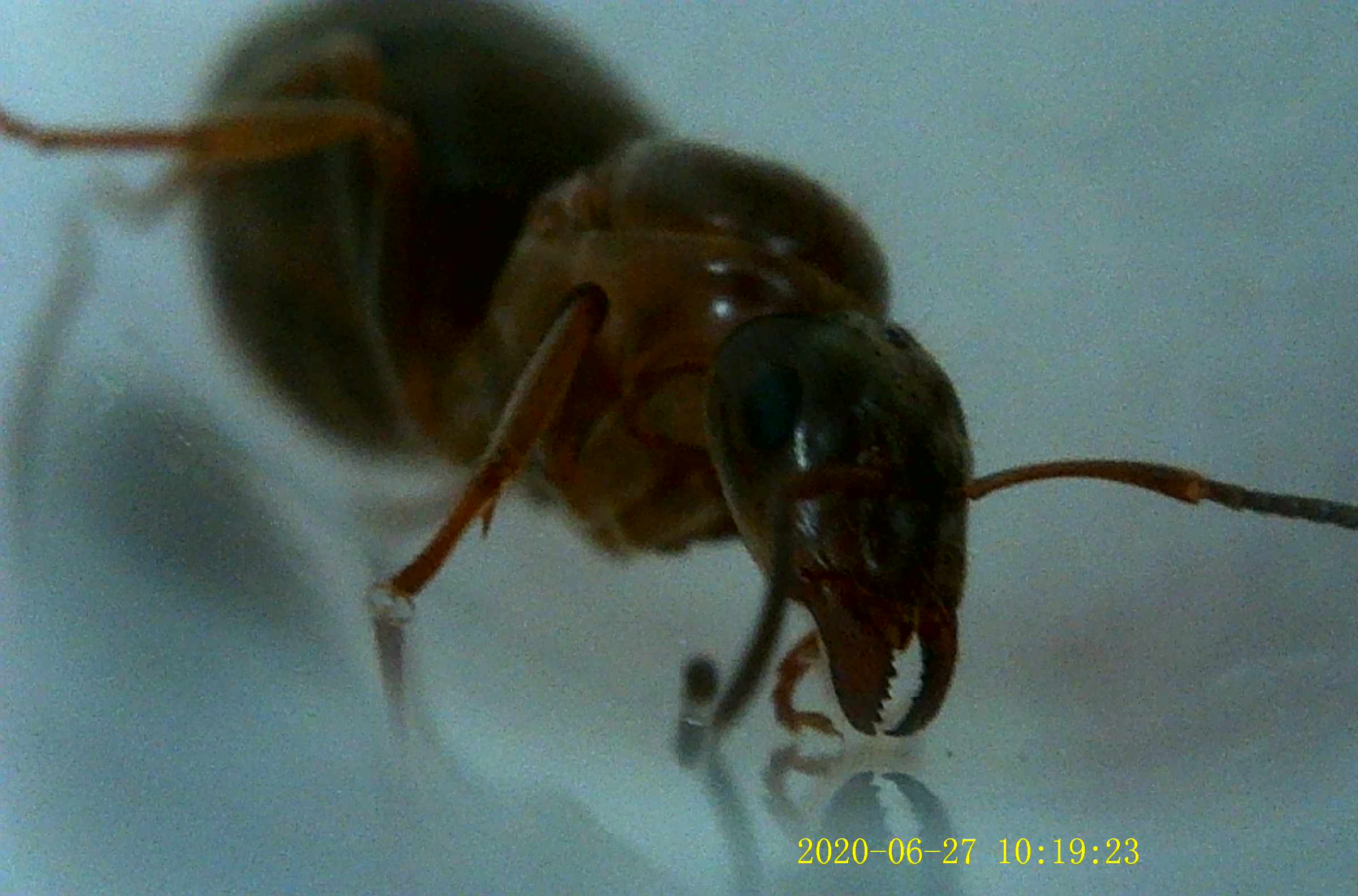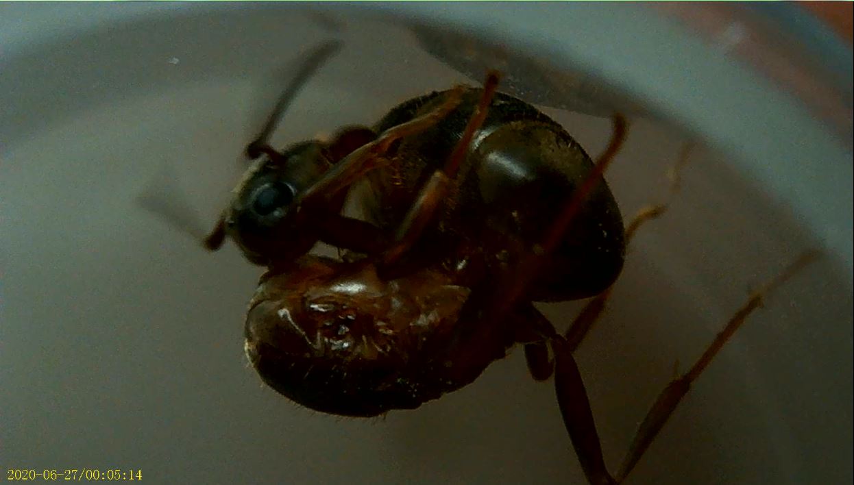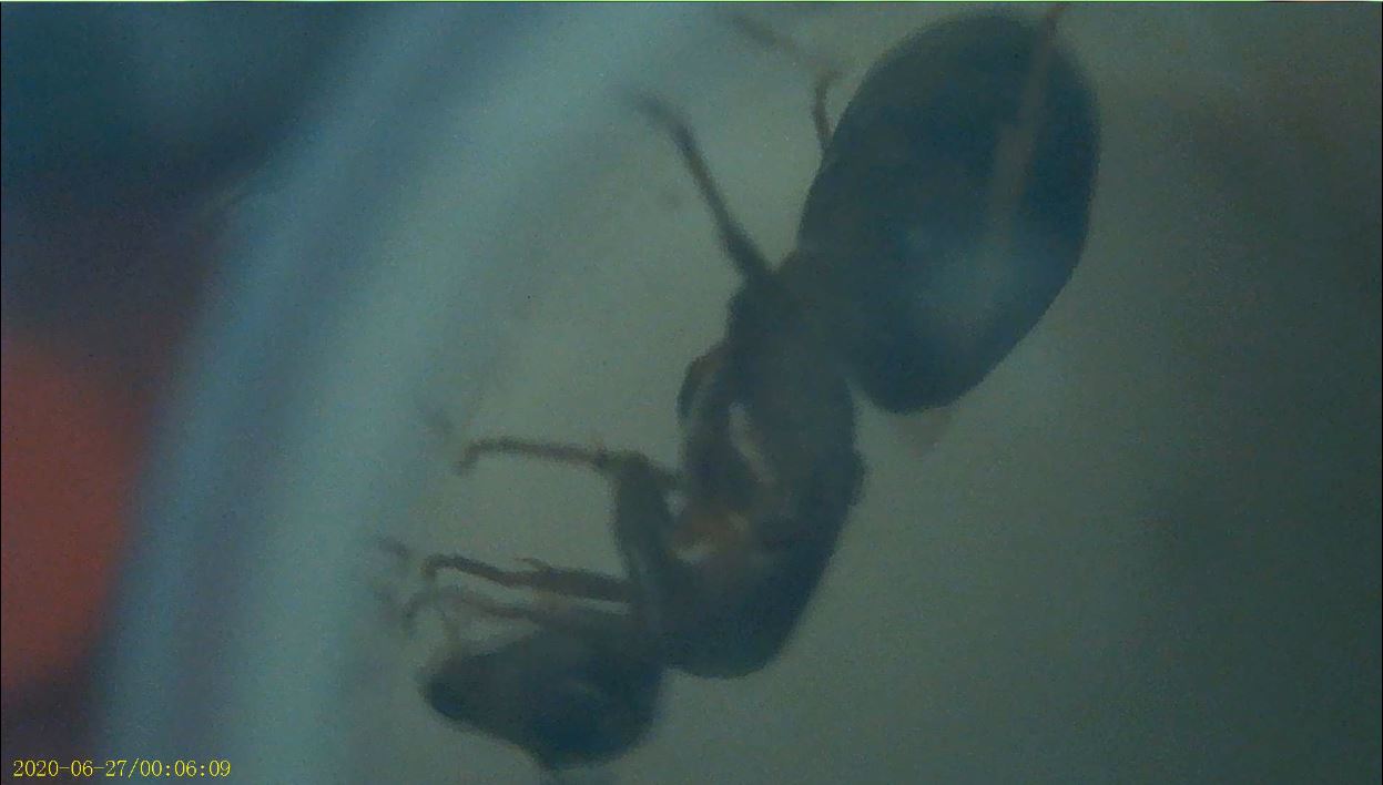 Questa regina è molto veloce e irrequieta (mentre cercavo di fotografarla la maledetta scappava fuori dalla provetta e non stava mai ferma). Sembra leggermente aggressiva: mi ha morso (così imparo a maneggiarla, ero troppo abituato alle timide regine di Tetramorium...)!