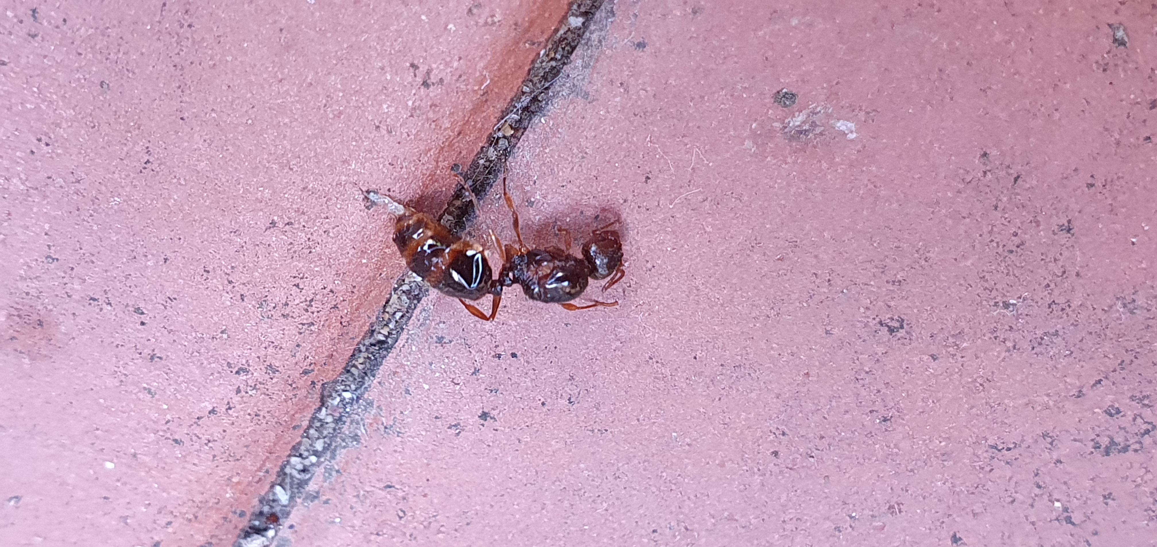 È una delle poche volte in cui faccio fatica anche solo ad avere una vaga idea sul genere, sembra molto una Solenopsis ma è grossa, oppure una Tetramorium ma con colori mooolto inusuali. Mi piacerebbe aiutarti ma non individuo la specie, finalmente un'ID più particolare per i nostri esperti del forum.