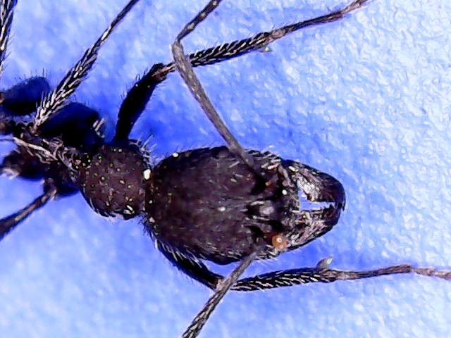 1.2mm, molto "aggressiva" e, quando cercavo di catturarla, riusciva a fare degli scatti di 10cm circa molto veloci. Ritrovata alla base di un arbusto assieme ad altri 4/5 altri esemplari sparsi. Mi e` stato impossibile rintracciare il formicaio nelle vicinanze.