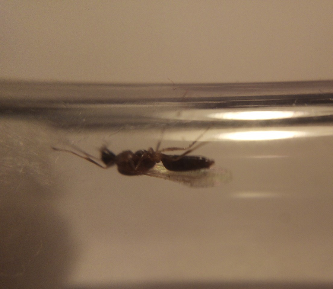 Il secondo invece mi sembra un maschio, trovato in un paesino sempre qua in zona, su una terrazza che dà su un'area boschiva, lunghezza circa 5-6 mm, capo e gastro neri, mesosoma mi sembra un po' più chiaro.