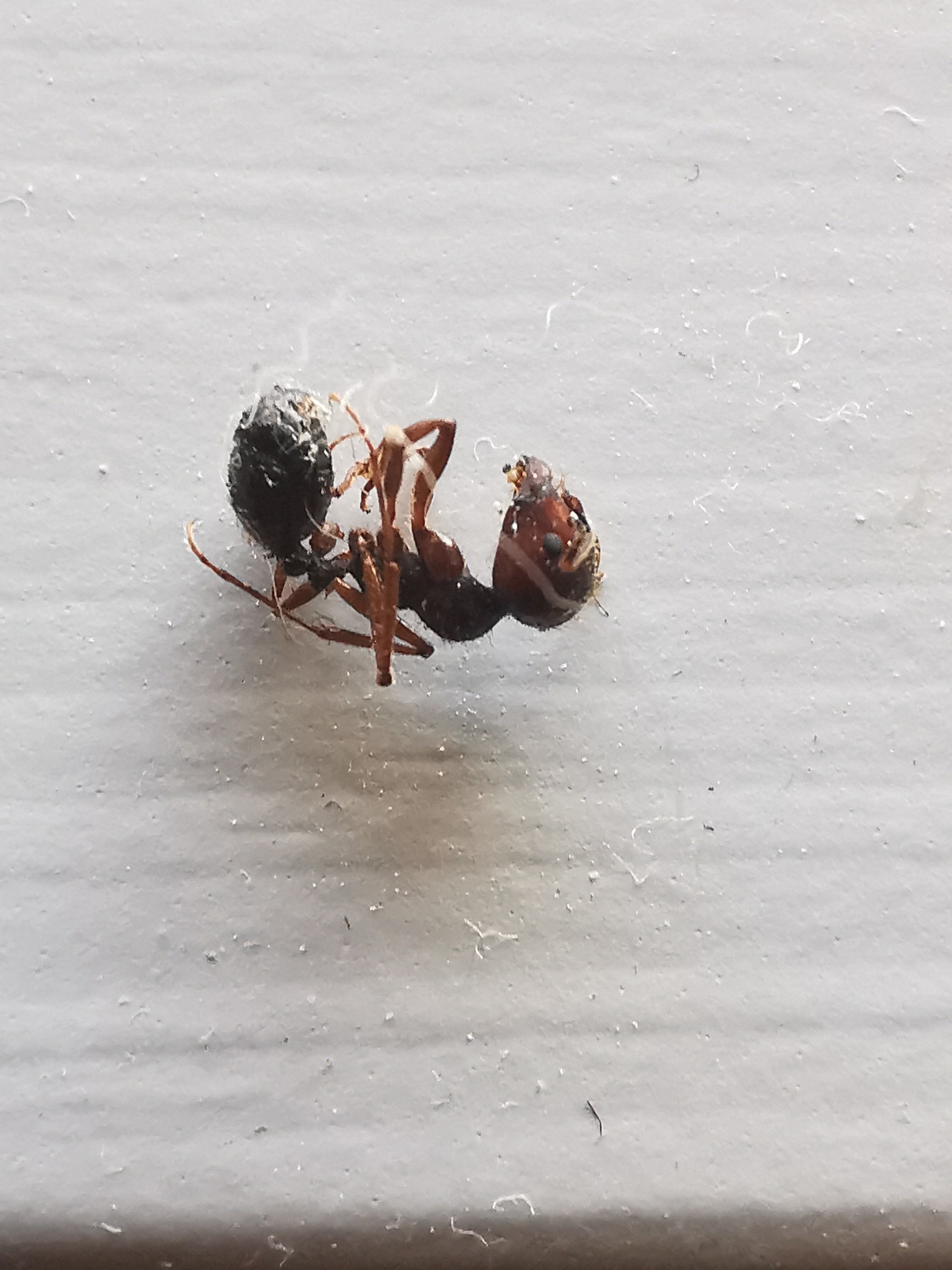 ho chiesto identificazione tramite un app e mi parlavano di una specie non autoctona : Pogonomyrmex rugosus , ma è presente in nord america ,