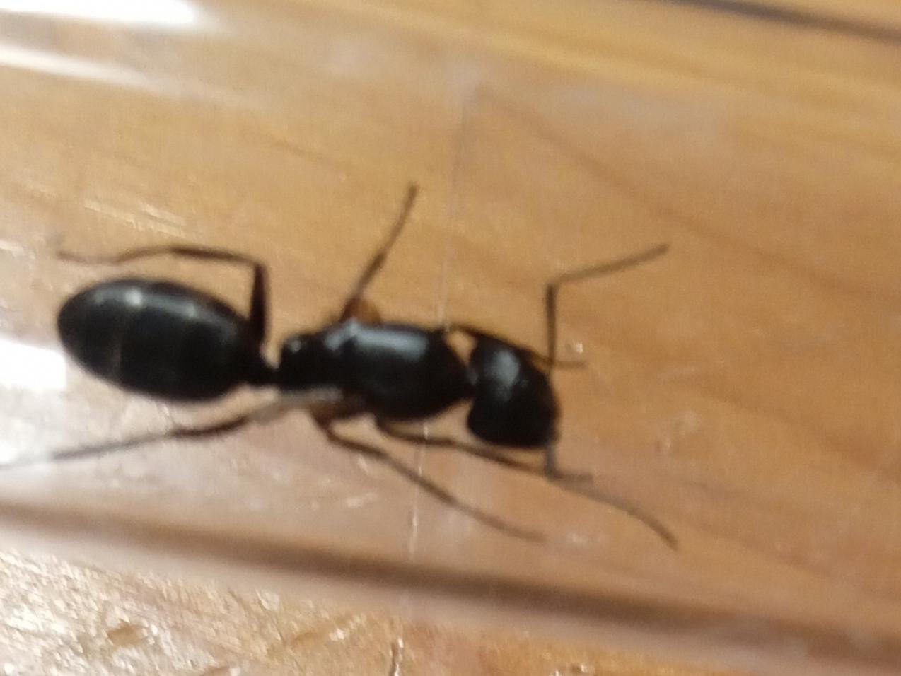 Ho trovato questa regina il giorno 25 luglio, vicino a un cespuglio. Penso che sia una Camponotus vagus perché vicino a casa ho due o tre colonie di questa specie e date le dimensioni ho pensato che si trattasse di una Camponotus vagus. Mi è parso subito strano che ne avessi trovata una fuori la stagione di sciamatura, ma l'ho comunque catturata visto che camponotus è una delle mie specie preferite ( non arrabbiatevi con me perché l'ho presa fuori stagione ma visto che l'ho trovata in mezzo di strada non ho pensato che una regina si allontanasse così tanto dal suo claustro).