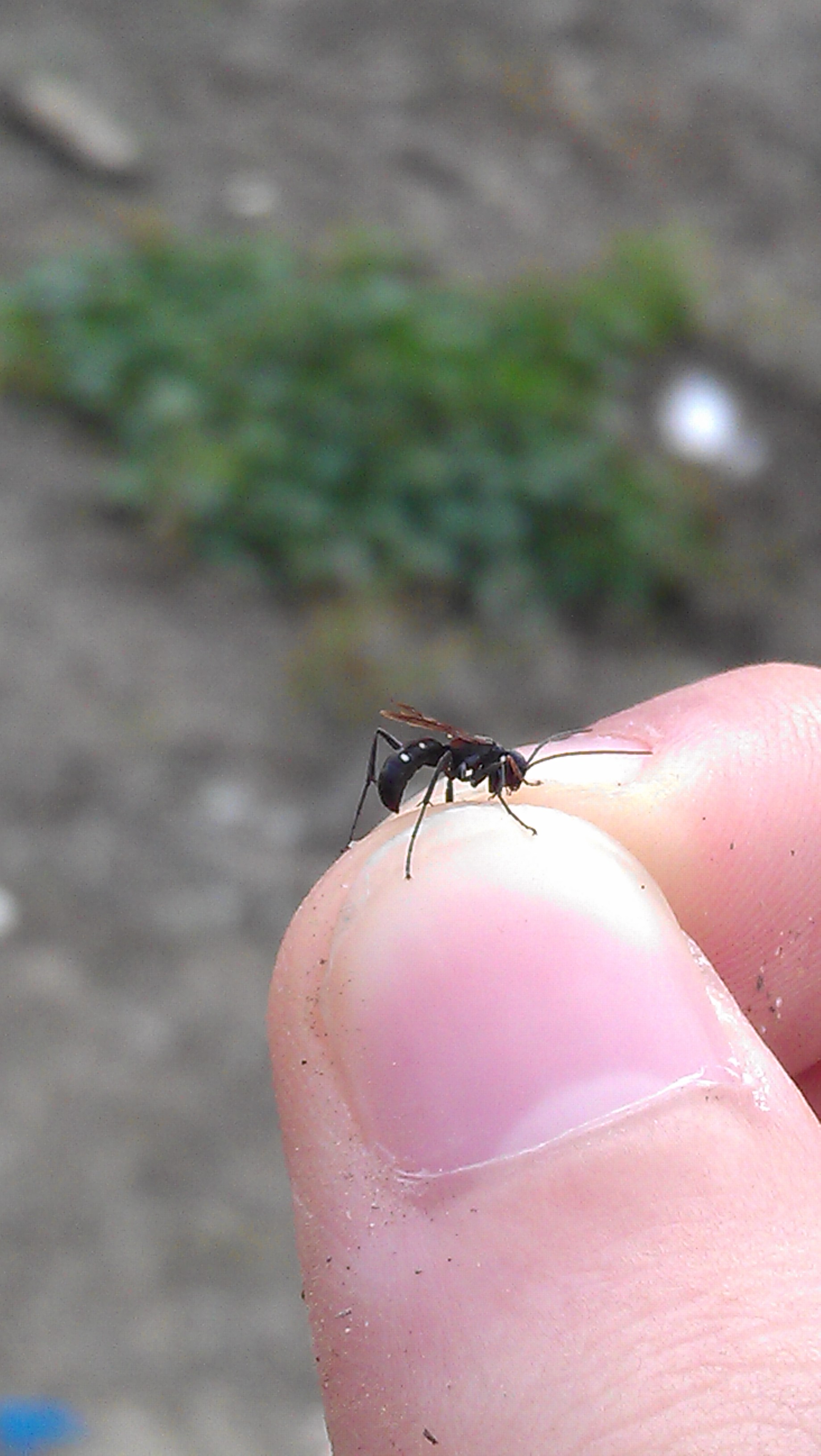 In effetti ci sono piccole vespe che hanno l'aspetto di formiche e questa qui ha le antenne un po' troppo lunghe,comunque tra delle operaie e cercava di volare battendo le ali a parer mio facendo quindi solo dei brevi salti.Eppure era veloce come la seconda operaia in foto.