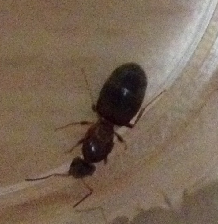 Le regine saranno intorno ai 3-4 mm direi, troppo piccole per qualunque Formicina autoctona che puoi trovare da te ad eccezione di Plagiolepis. Tuttavia io lascerei riserve sul fatto che siano effettivamente Formicinae. Se sei sicura della tua osservazione del peziolo singolo, oltre a Formicinae (per cui o sono Plagiolepis o non so cos'altro potrebbero essere, sostanzialmente... niente) potrebbero essere Dolichoderinae. Per esempio con queste dimensioni e aspetto grossolano sto pensando ad un paio di specie come Tapinoma pygmaeum, ma in particolare a... Linepithema humile!!! E ciò spiegherebbe tantissime cose