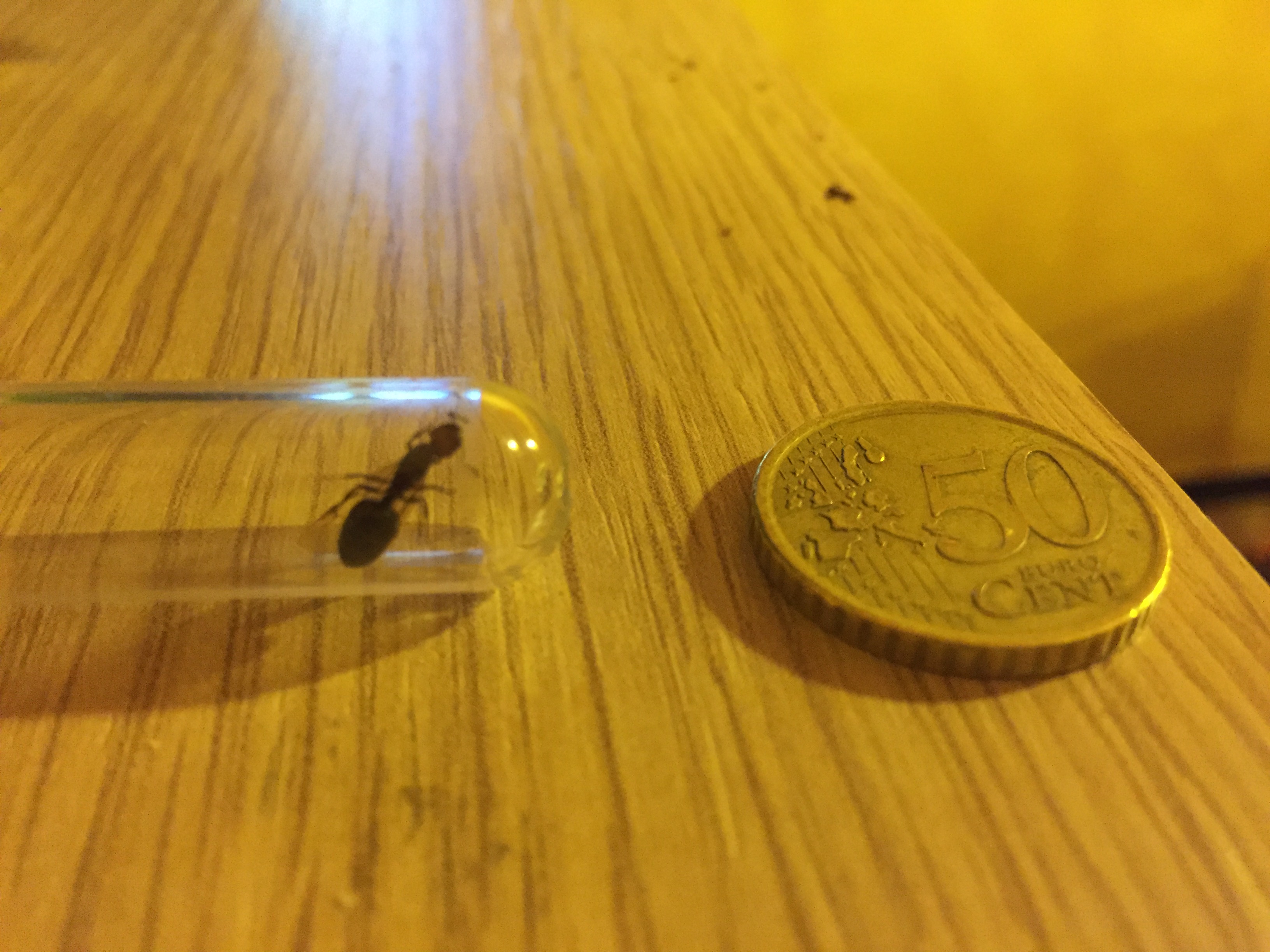 Comunque lo spazio può tranquillamente molto poco: quest'estate due C.ligniperda hanno fondato senza problemi in uno spazio stretto, e non sono sicuramente delle regine piccole.