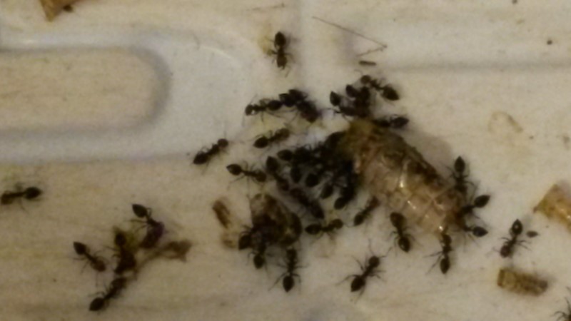 Per i ragni hai ragione, sono certamente molto utili, però sono un cibo perfetto, morbidi e utilizzabili anche dalle formiche piccole, facilmente catturabili e soprattutto inesauribili, in garage nonostante la razzia continua ne trovo sempre qualcuno, e poi mia moglie è la donna più felice del mondo da quando ho i formicai ....