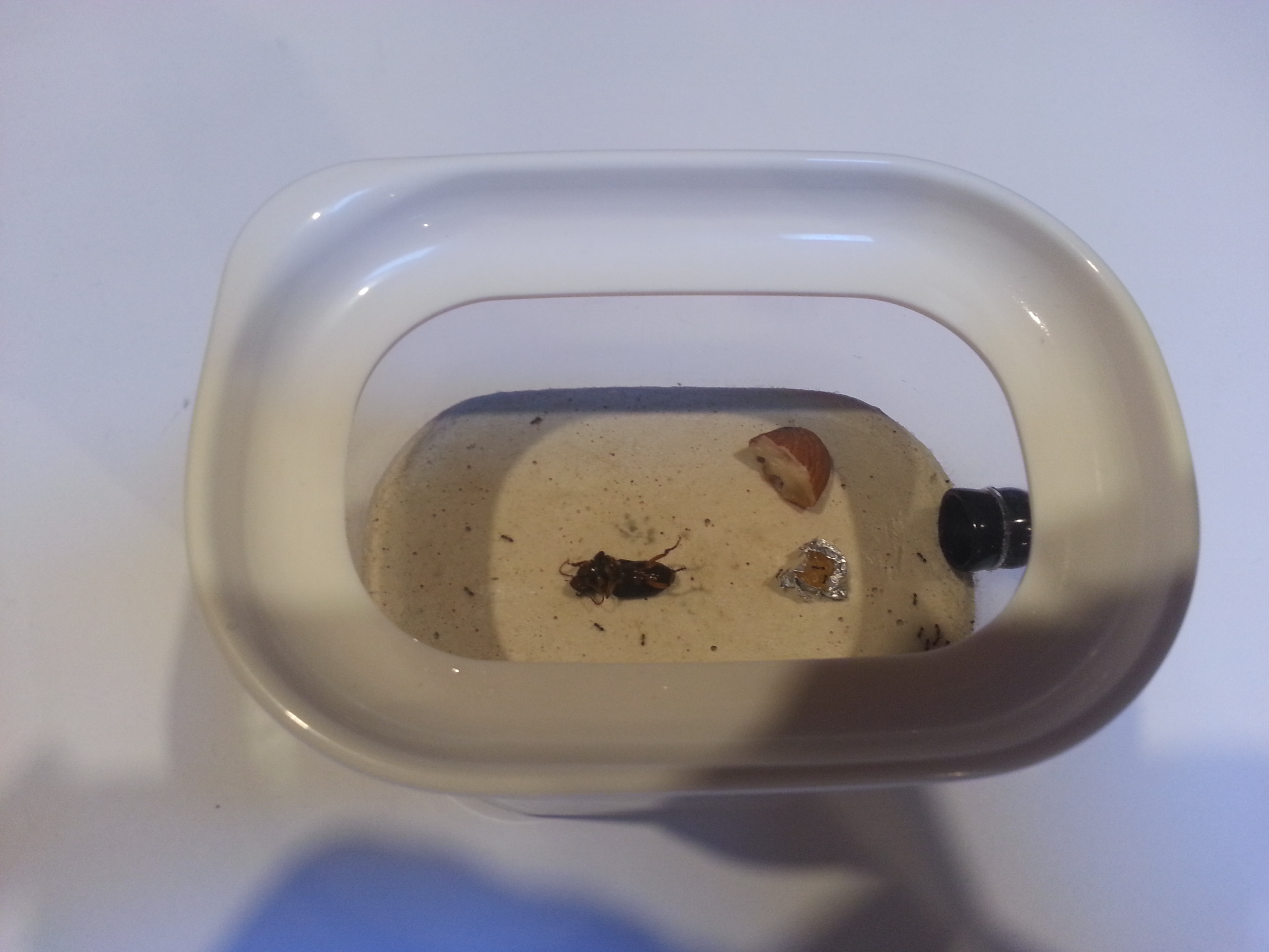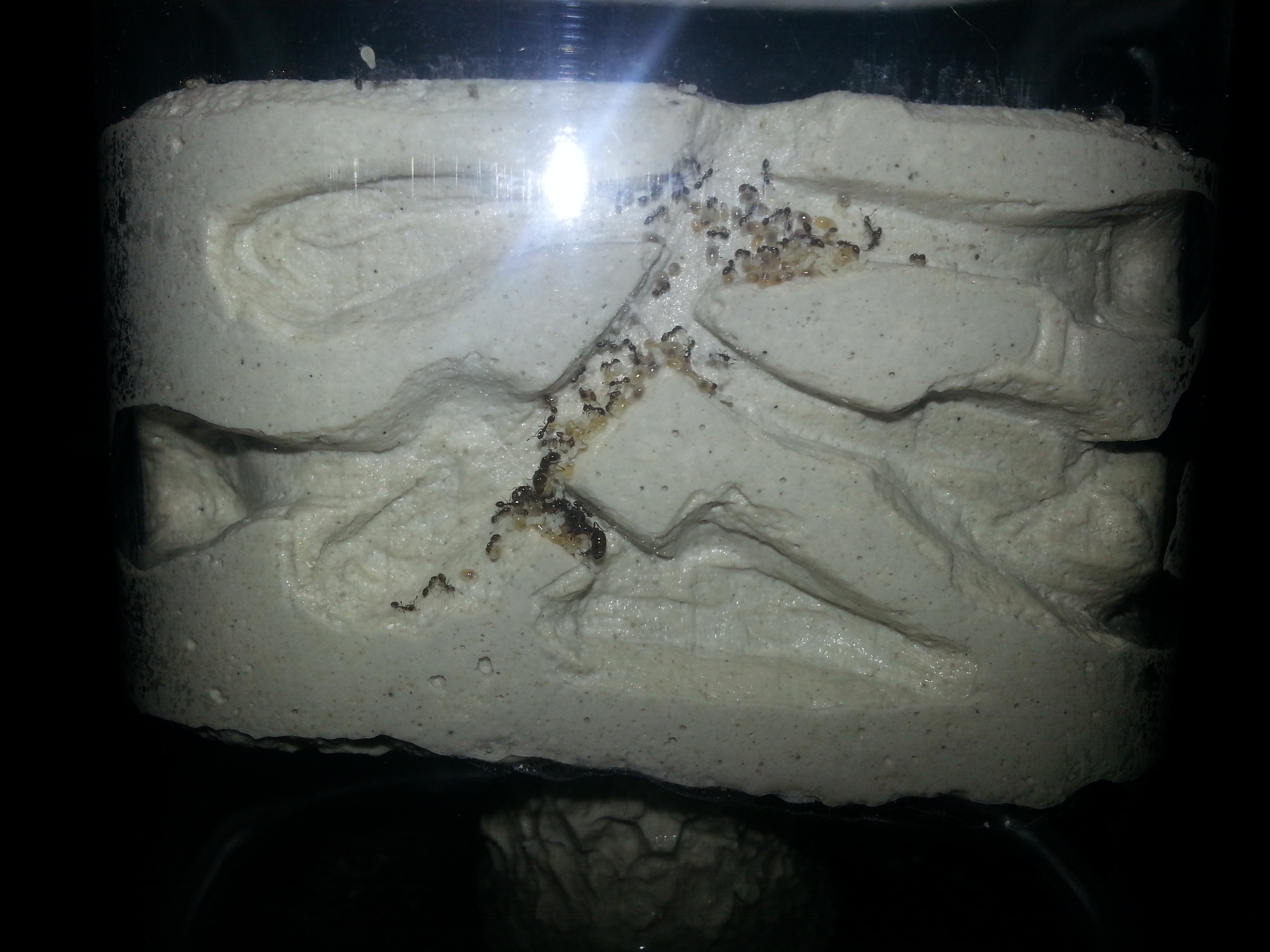 La colonia alloggiata è di Monomorium monomorium, con 4 regine e circa un centinaio di operaie.