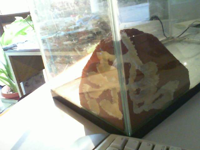 Avevo pensato di fare poi una colata di gesso per fare tutta l'arena.. Ma poi ci ho ripensato per i vari problemi che ci sarebbero a gestire una lastra del genere. Penso di mettere sabbia per acquari, con vari recipienti e raccoglitori dove mettere il cibo. Tra l'altro c'è un materiale molto carino, plastilina o fimo che permette di essere lavorato come il pongo e poi di essere cotto a 100 gradi (10 minuti).