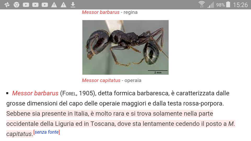 Yama ha scritto:Evidenzio che vivo in Toscana, Cecina, in provincia di Livorno, questo può implicare che siano delle Messor Barbarus