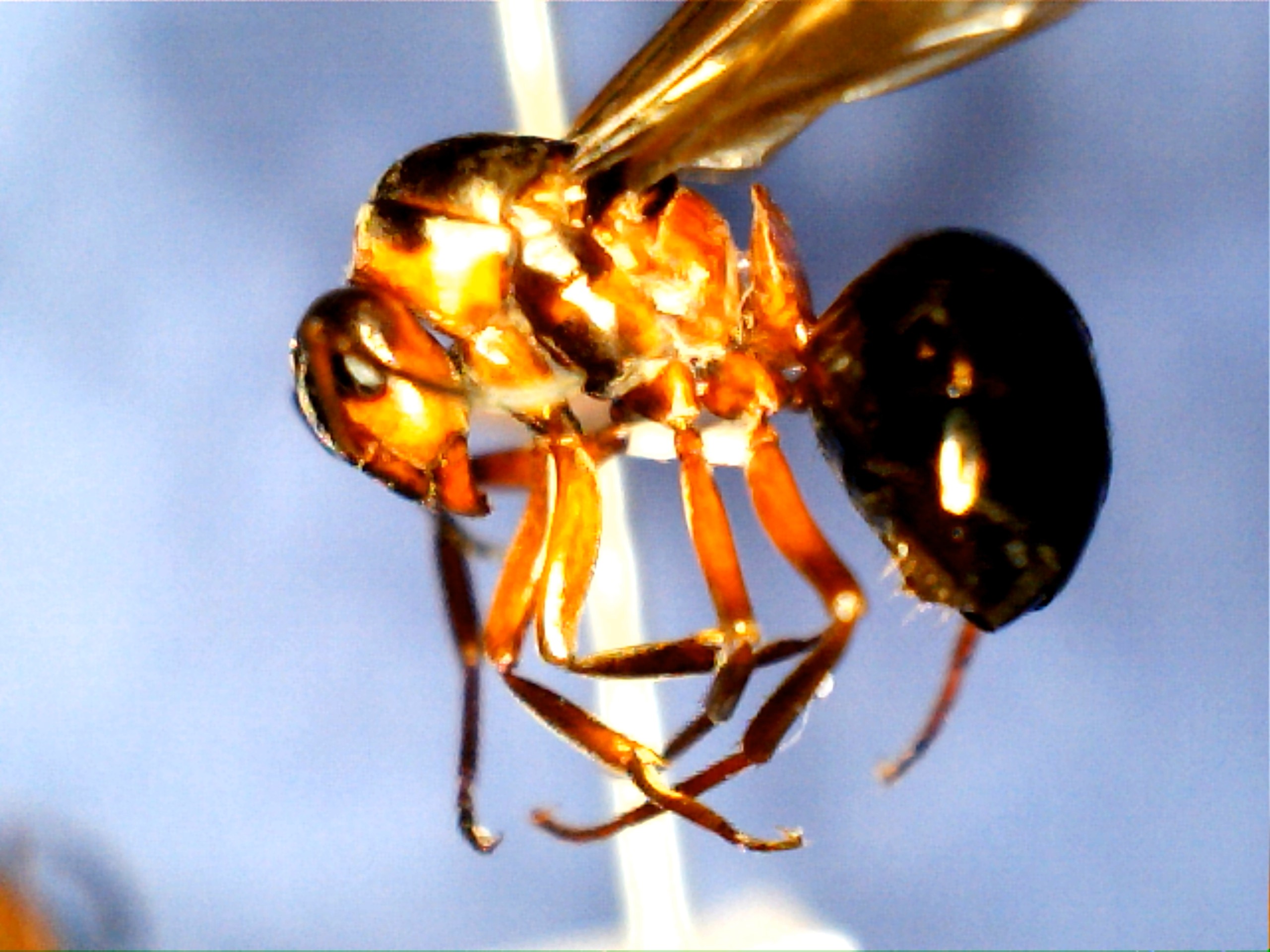 Ho potuto anche raccogliere tre regine ancora alate e un maschio che erano accuditi dalle operaie su un tronco ad altezza uomo (raccolte alle 10.30 di mattina, T 20°C).