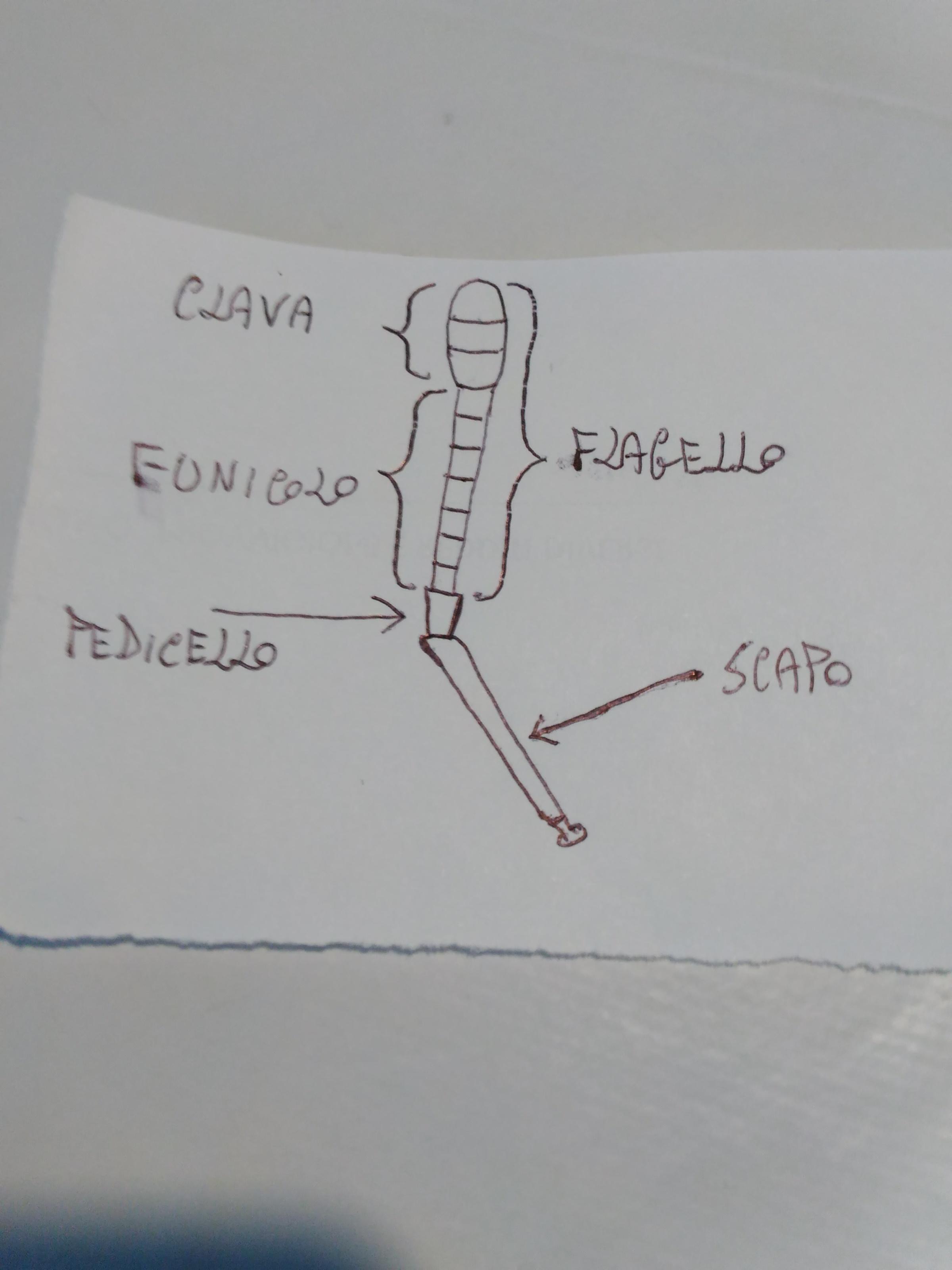 Quindi il funicolo non è tutta la parte dell'antenna oltre lo scapo. A questa parte vanno tolti il pedicello e la clava.