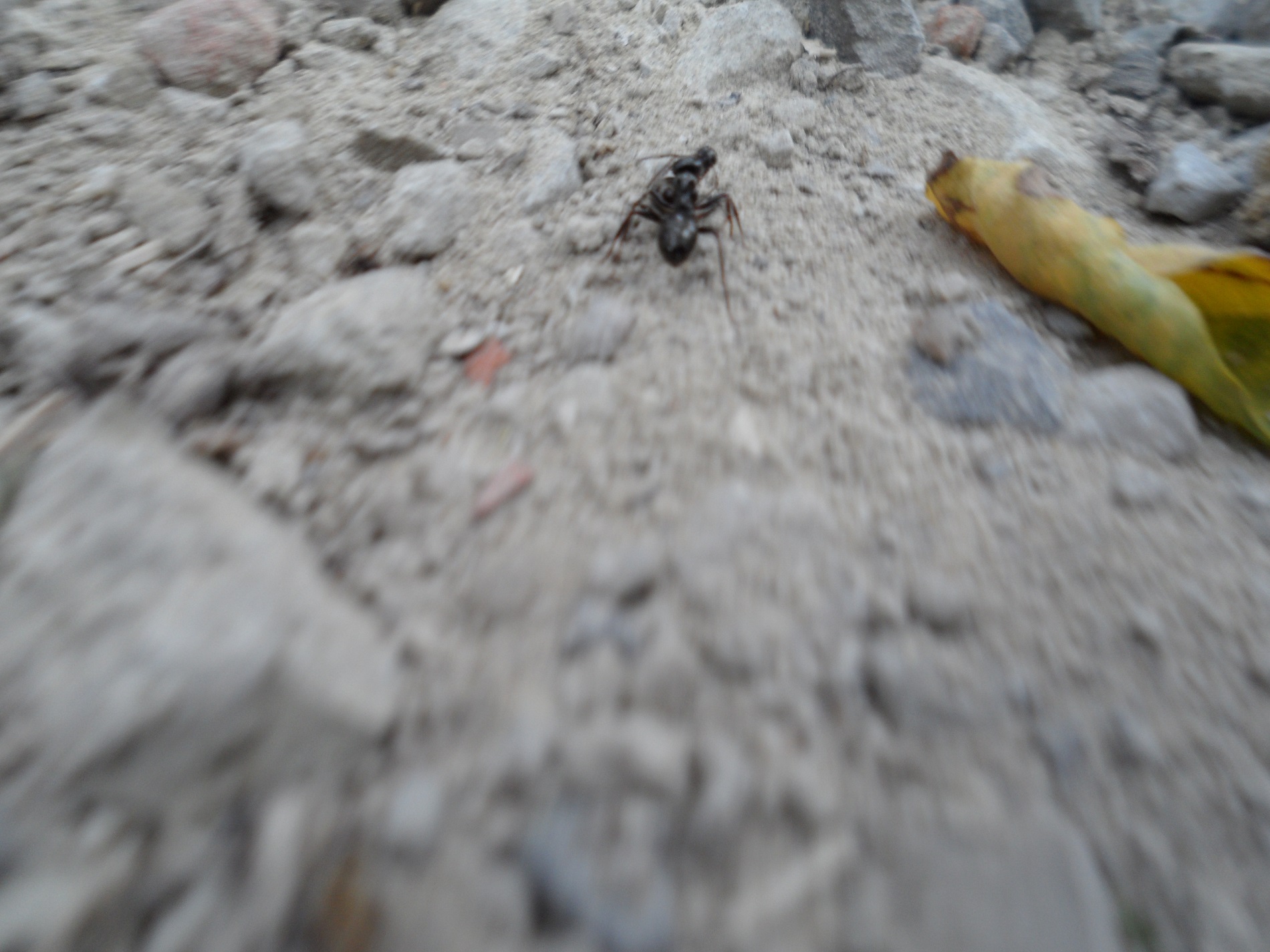inoltre ecco una regina a spasso, ne vedo una ogni 30minuti circa... o almeno io credo che siano regine, saranno già fecondate e senza ali, non so se nuove o se sono le regine del formicaio che vanno a foraggiare