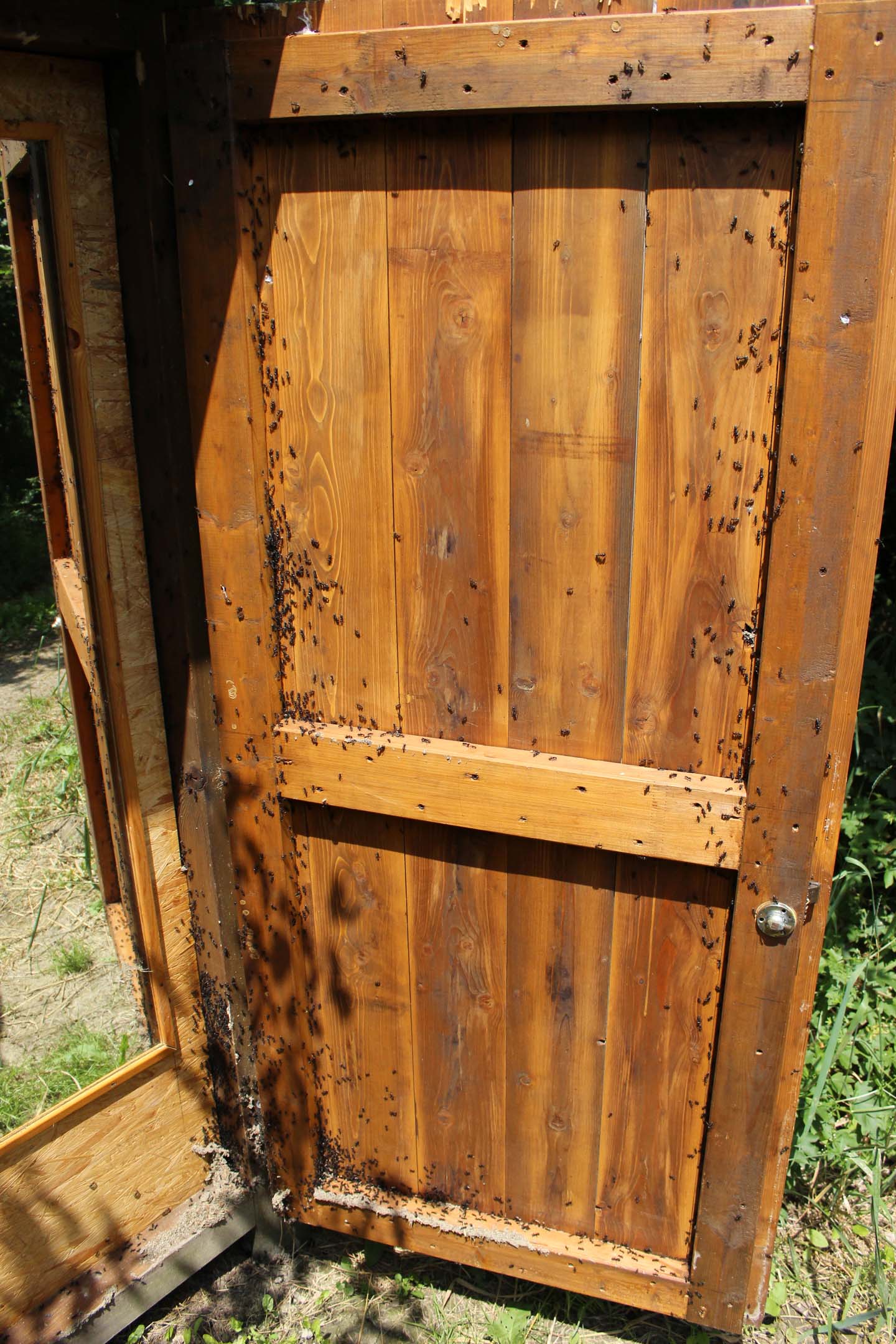 ed ecco alcuni dei danni che la colonia sta iniziando a creare portando terra nella bacheca, scavando le colonne portanti ed allargando buchi nel legno!!!