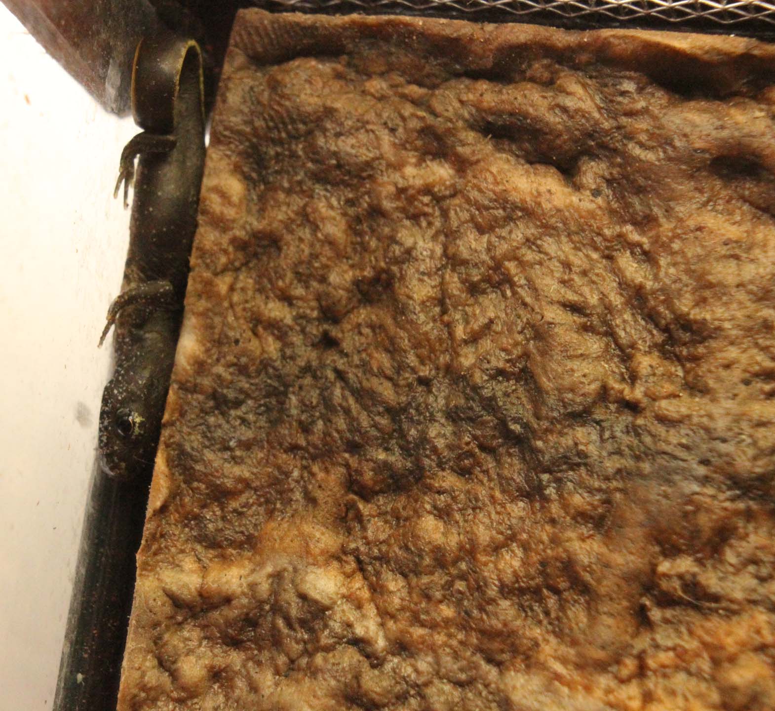 Giovane esemplare non ancora metamorfosato. Ben evidenti le branchie esterne caratteristiche delle forme larvali completamente acquatiche.
